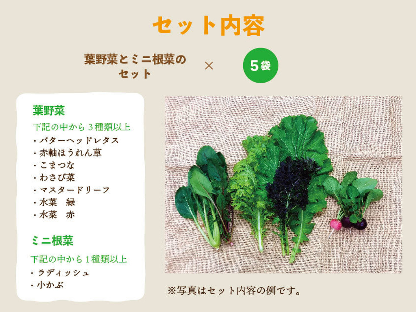 旬の葉野菜とミニ根菜をセットにしました。