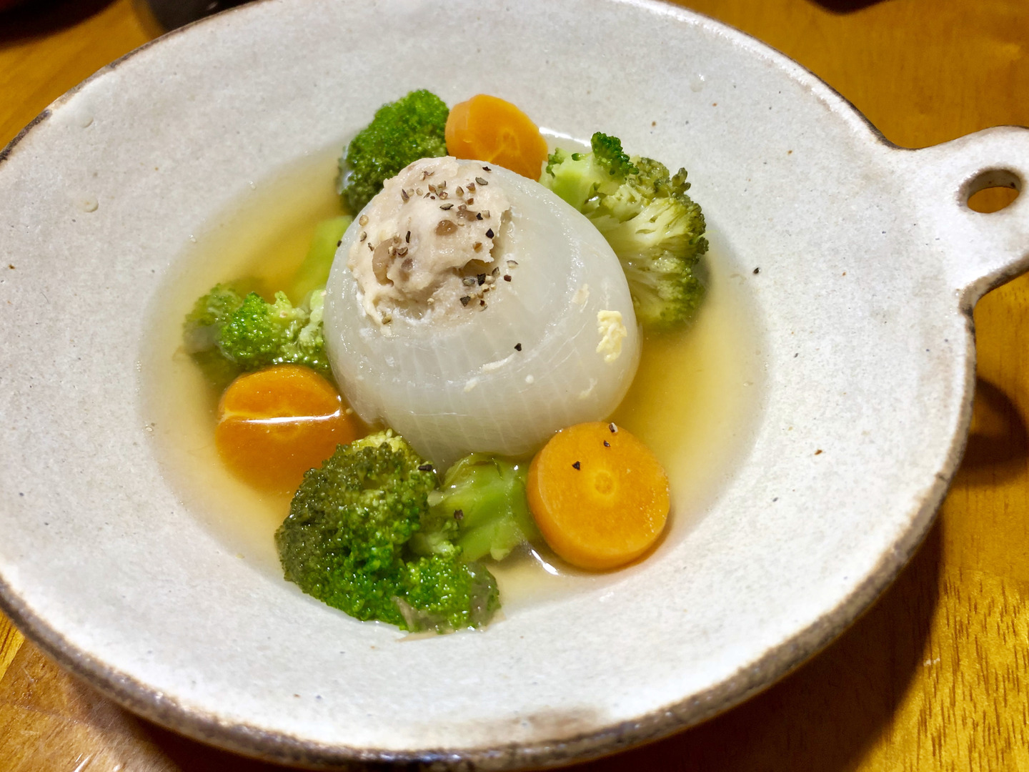 ・くし形に切ったサラダ玉ねぎ+on チーズ→オーブンで焼く