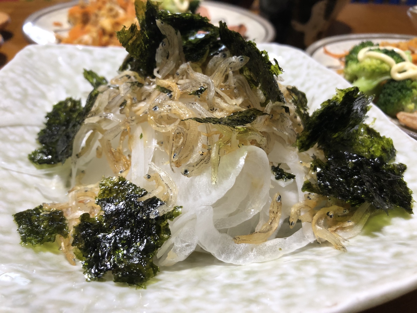 ・スライスしたサラダ玉ねぎ+鰹節+醤油