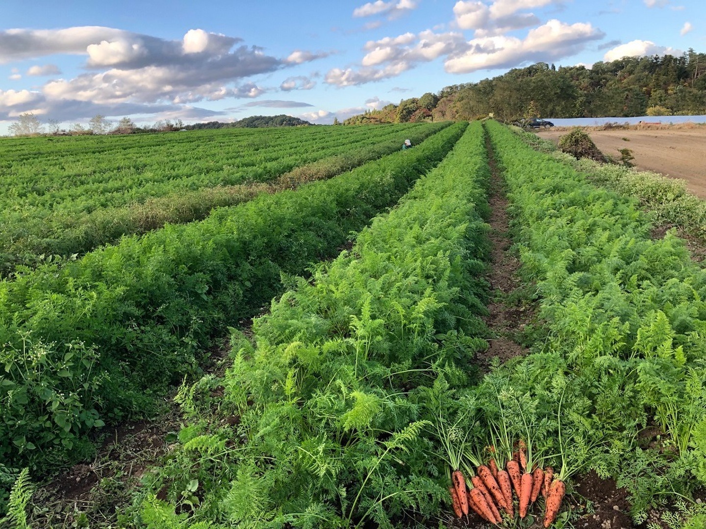 紅にんじん・・・甘みが強く、色鮮やかな京にんじんと五寸にんじんの中間型の品種です。
