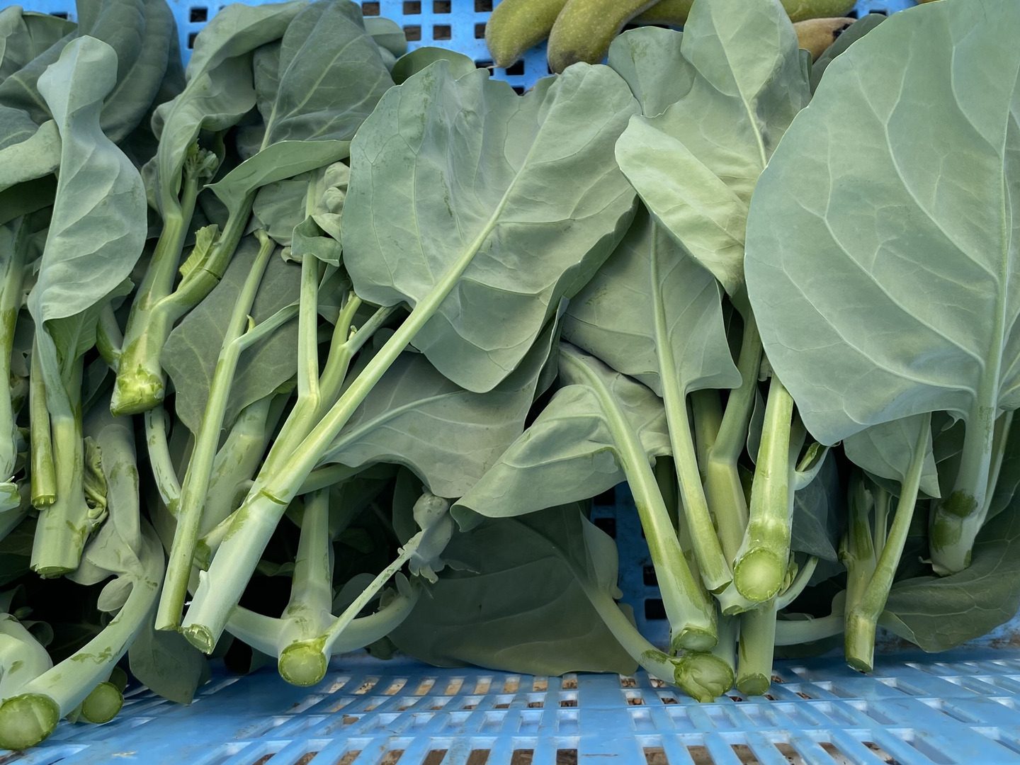 太い茎が特徴で、葉も蕾もおいしく食べられます。味は、ケールとアスパラガスと菜花の良いとこどりといったところでしょうか。