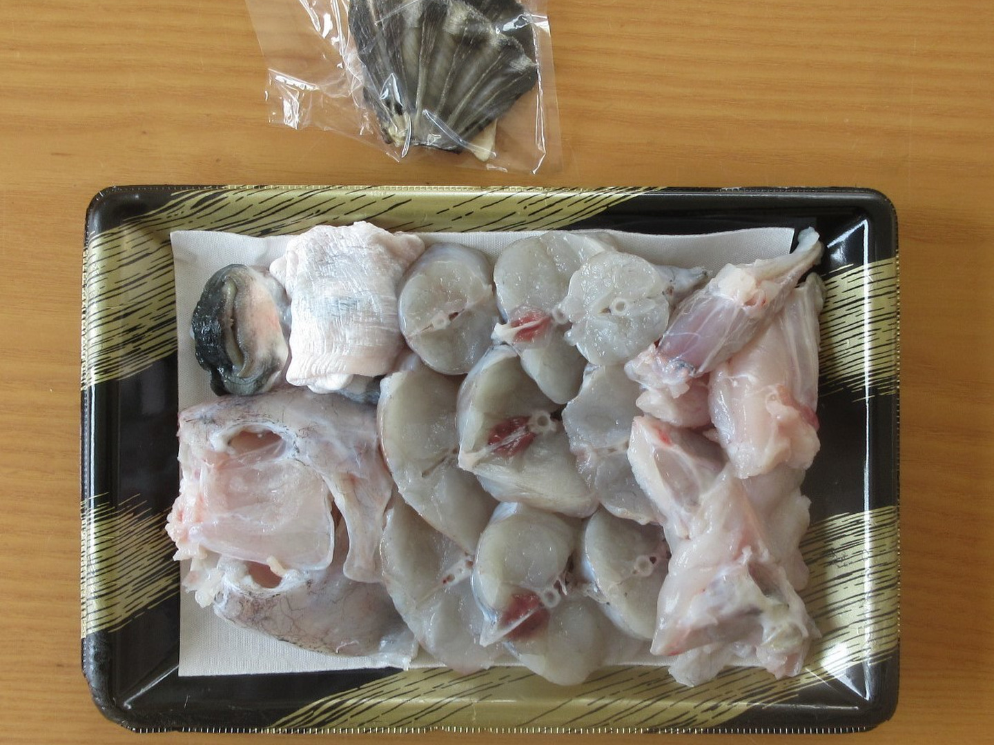 商品について あわせ買い対象 同生産者の別の「あわせ買い対象」商品と一緒にご注文いただくと、送料をまとめてお届けできる場合があります。 生産者からのお知らせ 【お届け希望日について】冷蔵発送の商品は、注文を受けた翌日以降に水揚げし、それから加工・発送処理を行うため、発送までに時間がかかります。お届け希望日は、注文日より5日後以降でお願いします。 もっと見る 内容 とらふぐ 切り身・アラ・ふぐ皮(とうとみ)(合計約500g) 乾燥ふぐヒレ5枚 調理レシピ 重量・容量 約500g 発送 ヤマト運輸(食べチョク特別送料) 送料 ¥ クール便(冷凍) + ¥ 330 複数注文すると送料がまとまります。 種別 魚介類 魚 トラフグ 加工品 加工方法 切り身 産地 長崎県 養殖 魚介類 加工品 贈答品 家庭用 トラフグ 切り身 長崎県x魚介類 長崎県x加工品 長崎県x魚 長崎県xトラフグ 長崎県x加工方法 長崎県x切り身 商品説明 とらふぐの旬は冬です。寒い季節に、ご自宅で温かいふぐ鍋はいかがですか?少人数用のお試しセットをご用意しました。生産者だからできる良心的な価格でのご提供です。こちらの商品は、3個までまとめて1個分の送料でお送りすることができます。<お届け希望日について>北陸、関東、信越、東北、北海道、沖縄は、発送日の翌々日の午前中からの配達になります。お届け希望日は、注文日より5日後以降でお願いします。【熨斗対応】熨斗希望・名入れ希望の場合は、特記事項にご記入ください。例:「御歳暮 佐藤」「内祝 佐藤一郎」「素熨斗希望」など、可能な限り対応いたします。熨斗は発泡ケースの中、商品の一番上に入れます。特記事項へのご記入がない場合は、熨斗等は入れません。なお、贈答用の包装は致しかねますのでご了承ください。<お召し上がり方>掲載している写真はイメージです。同封しておりますレシピを参考に、調理してからお召し上がりください。<味>とらふぐは、高たんぱく・低カロリー・低脂肪です。うまみ成分の一つであるタウリンは血液をサラサラにする効果があります。ふぐ皮はコラーゲンが豊富です。<養殖のこだわり>地元の巻き網漁師から、朝捕れで鮮度の良いアジやサバを仕入れ、自社で冷凍しミンチにした餌を毎日給餌します。人工飼料はあまり使用せず、天然のとらふぐが食べるような餌を給餌しています。<産地の特徴>長崎県佐世保市<品種など>長崎県産養殖とらふぐ<賞味期限>要冷凍-15℃以下で、発送日より1か月 もっと見る この商品のことをお友達にもシェアしませんか ポスト シェア
