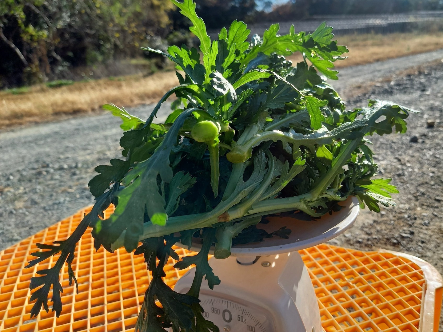 内容 箱サイズは、60サイズです。目安として、収穫した時は、約300~350g春菊のサイズは、バラバラです。(収穫した時は約300~350gですが、配送中に水分が抜けて、300gよりは、少なくなる可能性があります。)