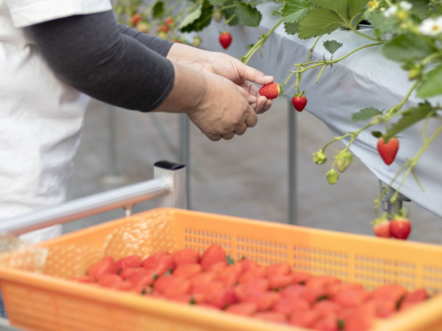 最新の環境制御システムを導入したいちごハウスは岐阜県最大級の規模を誇り、熟練者の経験・知識とスマート農業の融合により、高品質ないちごを栽培できるように精進しています