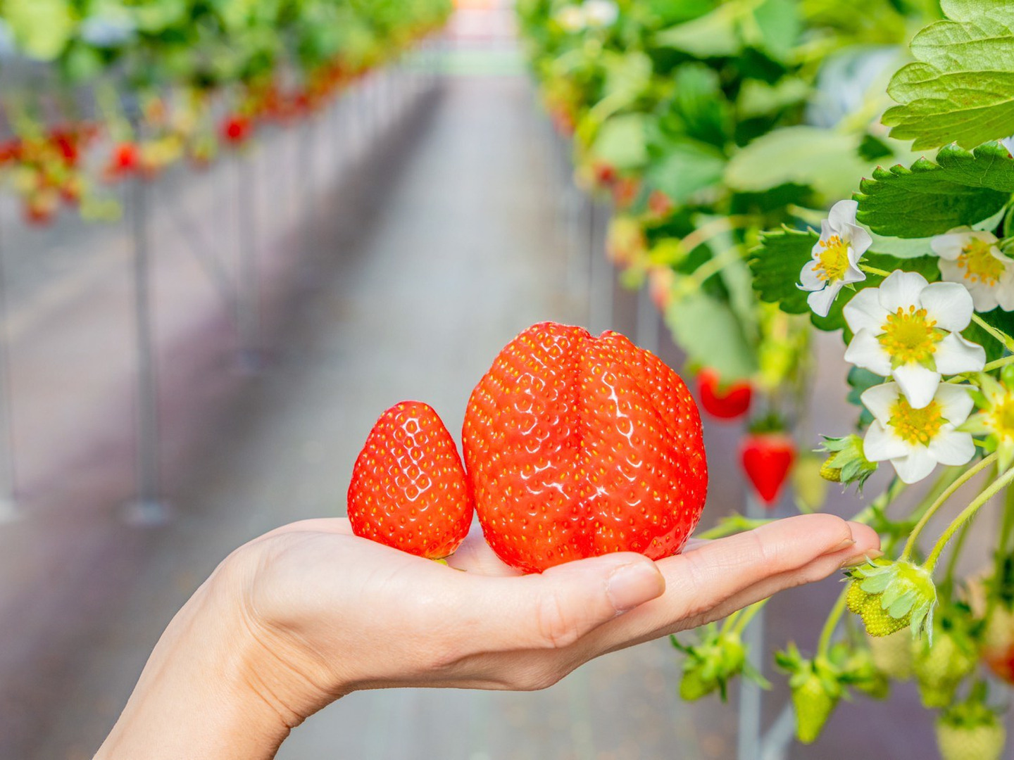 最新の環境制御システムを導入したいちごハウスは岐阜県最大級の規模を誇り、熟練者の経験・知識とスマート農業の融合により、高品質ないちごを栽培できるように精進しています