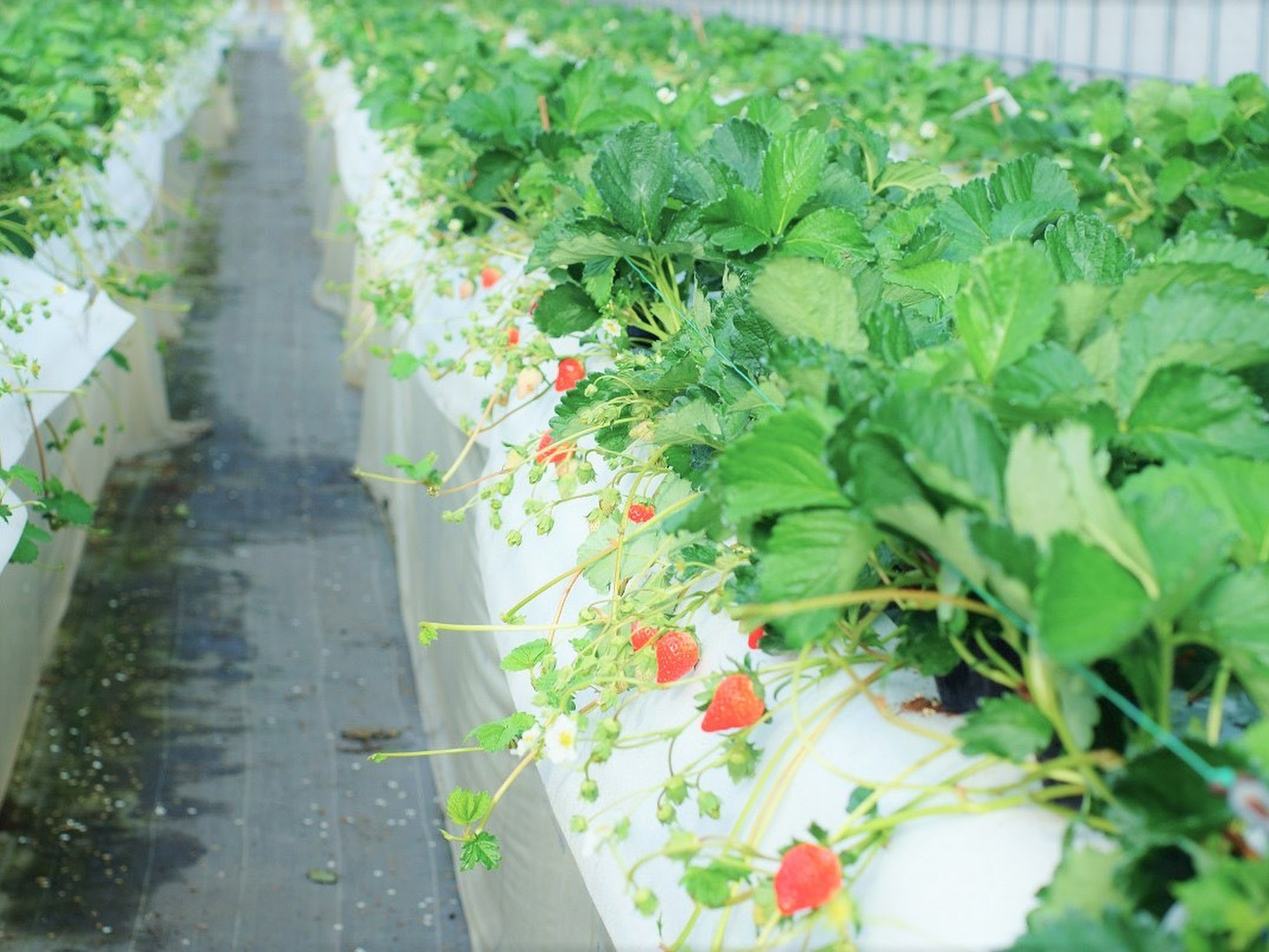 イチゴには、アブラムシ、ハダニと害虫がよくつきます。農薬も大変多くの数がありますが、正直いちごの実も傷めてしまいます。直接口に入るものですので可能な限り農薬を減らし苺にダメージの無いようにする為に、害虫を食べる天敵生物を放飼してイチゴの実に影響がでないようにしております。また、苺の株に良性酵母を使う事で病気を抑え、さらに株の成長を促進する事で病気に強い株が出来ます。病気にかかりにくい株&環境となりますので農薬を減らすことが出来ます。