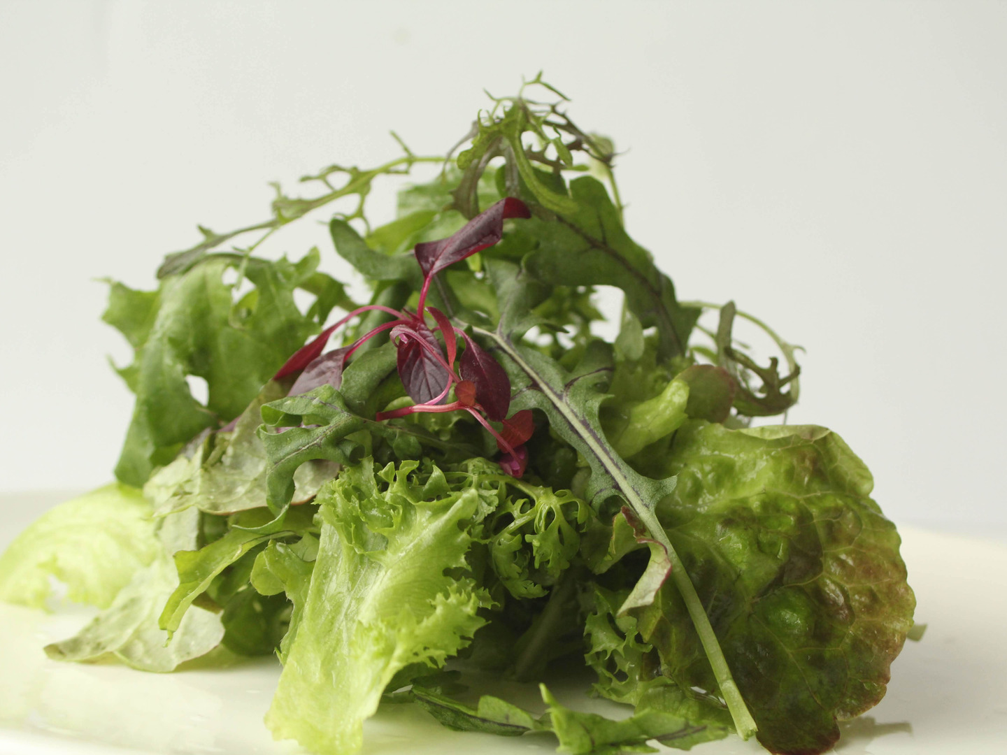 サラダパッケージは、クリスピーレタス、ブーケレタス(赤)、レッドアマランサス、レッドカラシナ、レッドソレル、フレッシュケール、赤軸ミズナ、チコリー、セルバチカ、レッドコマツナなど常時6種程度を一口大にカットして混ぜ合わせてパッケージングして納品します。