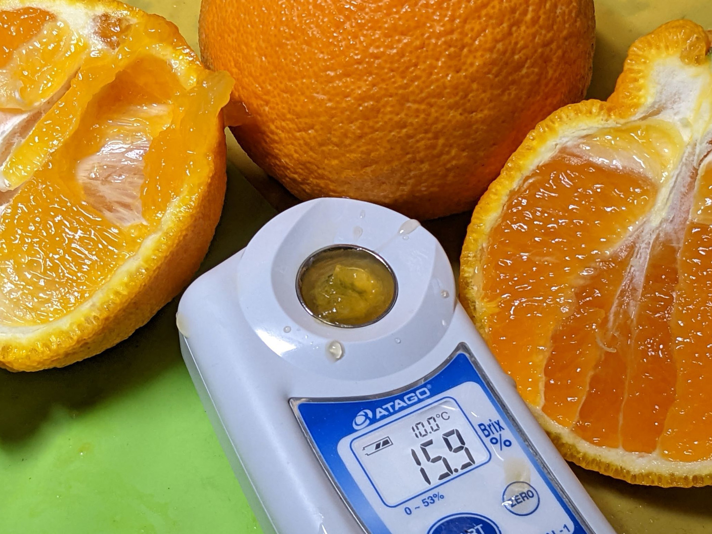 昨年、新品種の“味香デコ” は、11月後半の果皮がまだ緑い段階で12度ありました。初発送時には15度という個体も有りましたので、愉しみにして下さい。