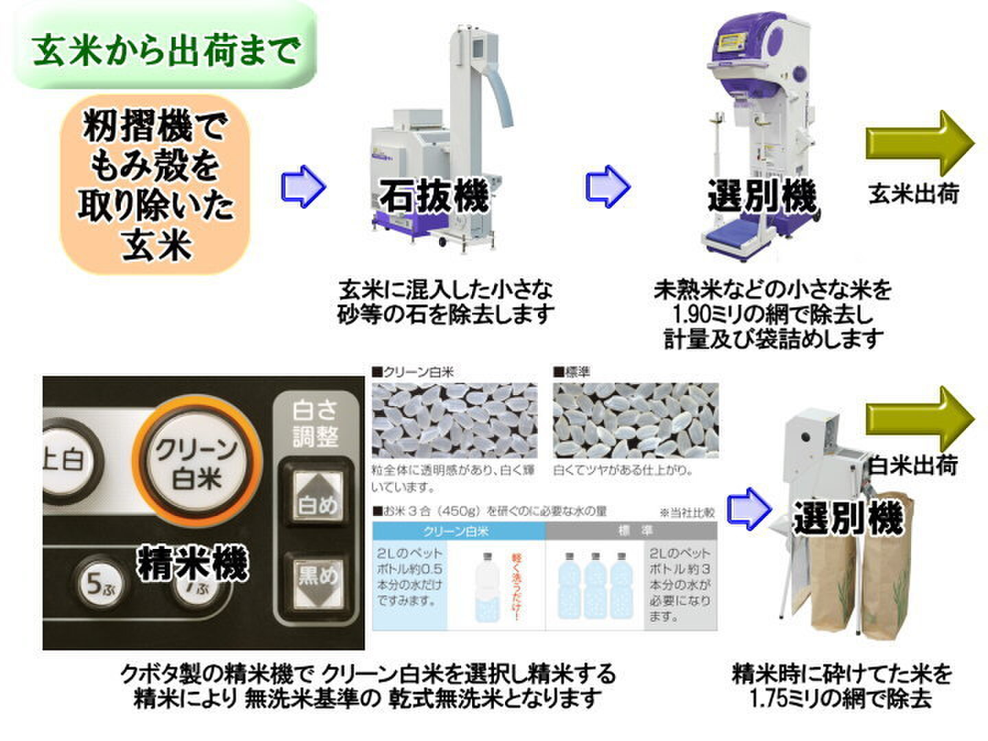 - 3 南魚沼産しおざわコシヒカリ乾式無洗米出荷までの作業工程。