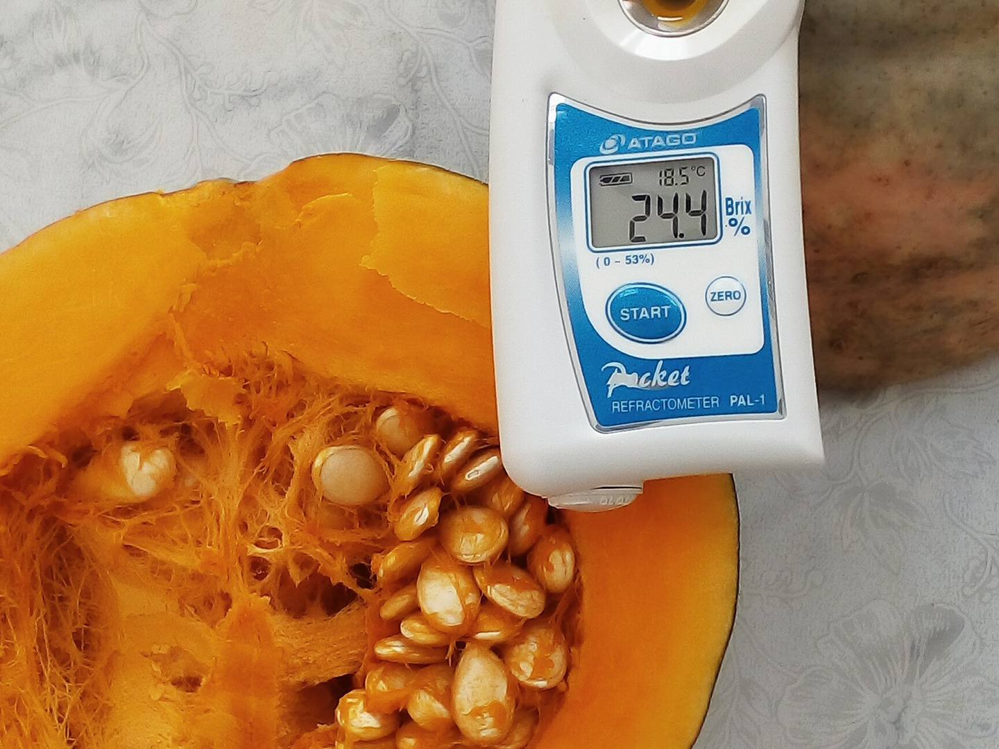 グレー色からピンク色のサインが糖度が上がり、甘くてホクホクの完熟のカボチャになりました! 12月21日の冬至にカボチャを食べて無病息災を、免疫力アップ 素敵な食卓にカボチャ料理でホッコリ幸せの感動をお届け致します。