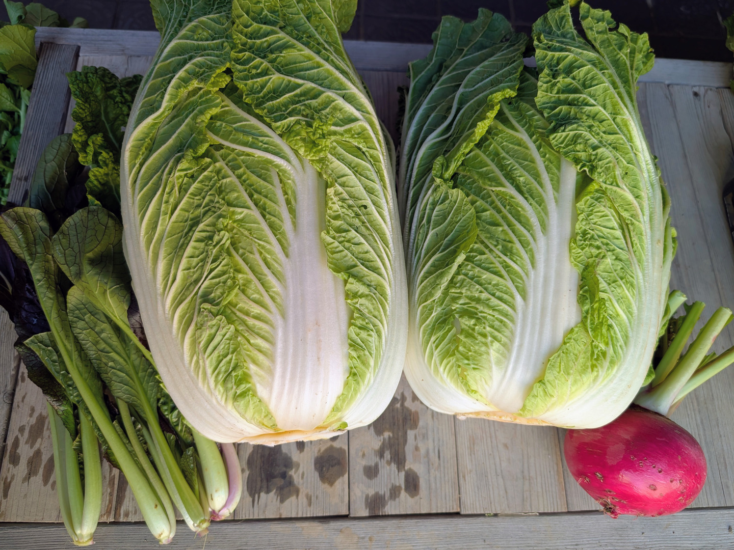 商品について あわせ買い対象 同生産者の別の「あわせ買い対象」商品と一緒にご注文いただくと、送料をまとめてお届けできる場合があります。 生産者からのお知らせ 体にいいものをコンセプトに、機能性野菜や旬の京野菜を中心に出品中です。ぜひこの機会にお試しください。 もっと見る 内容 京都産 オレンジクイン白菜2玉、赤かぶ(もものすけ)1個、紫小松菜1把 発送 ヤマト運輸(食べチョク特別送料) 送料 ¥ 常温便 + ¥ 0 数量1点ごとに送料が発生します。 種別 野菜 かぶ もものすけ 野菜 白菜 オレンジクイン 産地 京都府 農薬節約栽培 野菜 家庭用 動物性堆肥不使用 もものすけ オレンジクイン 京都府x野菜 京都府x白菜 京都府xかぶ 京都府xもものすけ 京都府xオレンジクイン 商品説明 今年の白菜は巻きがあまいかもしれませんm(_ _)m農薬量極限に減らしている為、穴あき・虫食い等ご了承の程宜しくお願い致します………………………………………………………………2021.11.17ラジオ MORNING SPRITE | α-STATION FM京都で紹介させて頂きました!!当菜園オレンジクインは、オレンジクインの種が発売されてから作り続けてきた大人気の一品です(^o^)✨オレンジクインは加熱すると鮮やかなオレンジ色がしっかりと残るので、お鍋や炒め物、煮物、漬け物など、さまざまな食べ方ができます!オレンジの彩りを生かしてさっと湯通ししてサラダにも使えます。▶︎▷オレンジクインの保存方法◁◀︎丸ごとの白菜は新聞紙で包んで涼しい冷暗所で保存します。その際、なるべく立てておきます。またカットしたものは、ラップで包んで冷蔵保存し、早めに使い切ります。タキイ種苗のホームページによると、オレンジクインは一般的なハクサイが含有しないシスリコピンを含んでいるそうです。このシスリコピンとは橙黄色トマトなどに含まれる色素成分で、赤いトマトに含まれるリコピンと同じような効果がある上に、リコピンより2.5倍も体に吸収されやすいそうです。赤かぶ もものすけおすすめの食べ方サラダ・マリネ・甘酢漬物など★野菜を卸している料理屋さん直伝★〜もものすけ(赤蕪)のドレッシングの作り方〜もものすけ1個を薄く皮を剥く。それを角切りにして、オリーブオイル5に対してお酢1の割合で塩、少々砂糖、大さじ1しょうゆ、大さじ1の調味料を角切りにした赤蕪といっしょにミキサーにかけてドレッシングの出来上がりです!(塩、砂糖、しょうゆはお好みで調整して下さい)※農薬節約栽培で9.5割節減しています。よろしければ生産者情報もご覧下さい〜! もっと見る この商品のことをお友達にもシェアしませんか ポスト シェア
