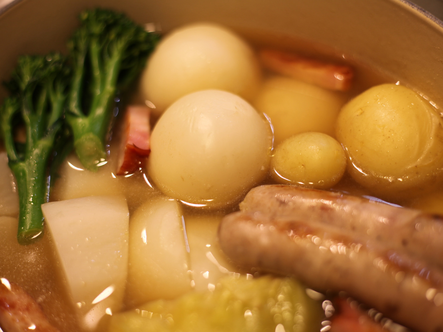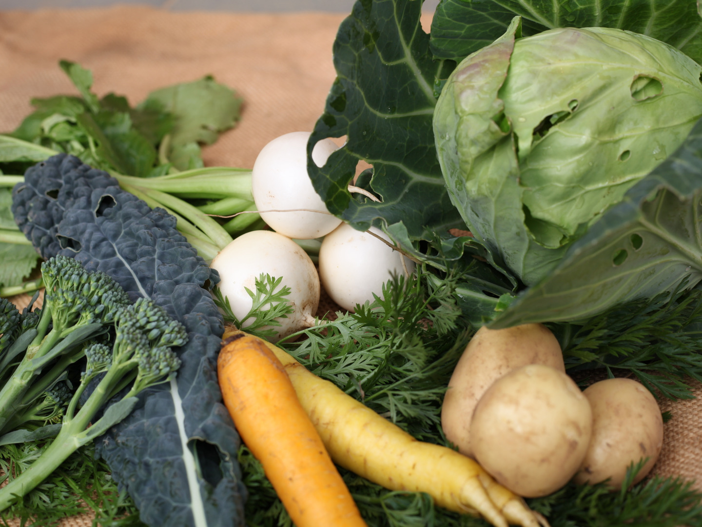 セットにはキャベツ、カーボロネロ(黒キャベツ)、カブ、ニンジン、じゃがいも、スティックセニョールを1回分(2人でたっぷり~4人で小皿)が入っていますので、あとはお好きなベーコン、ソーセージ、お肉などを合わせて煮込んでいただくだけで出来上がりです。