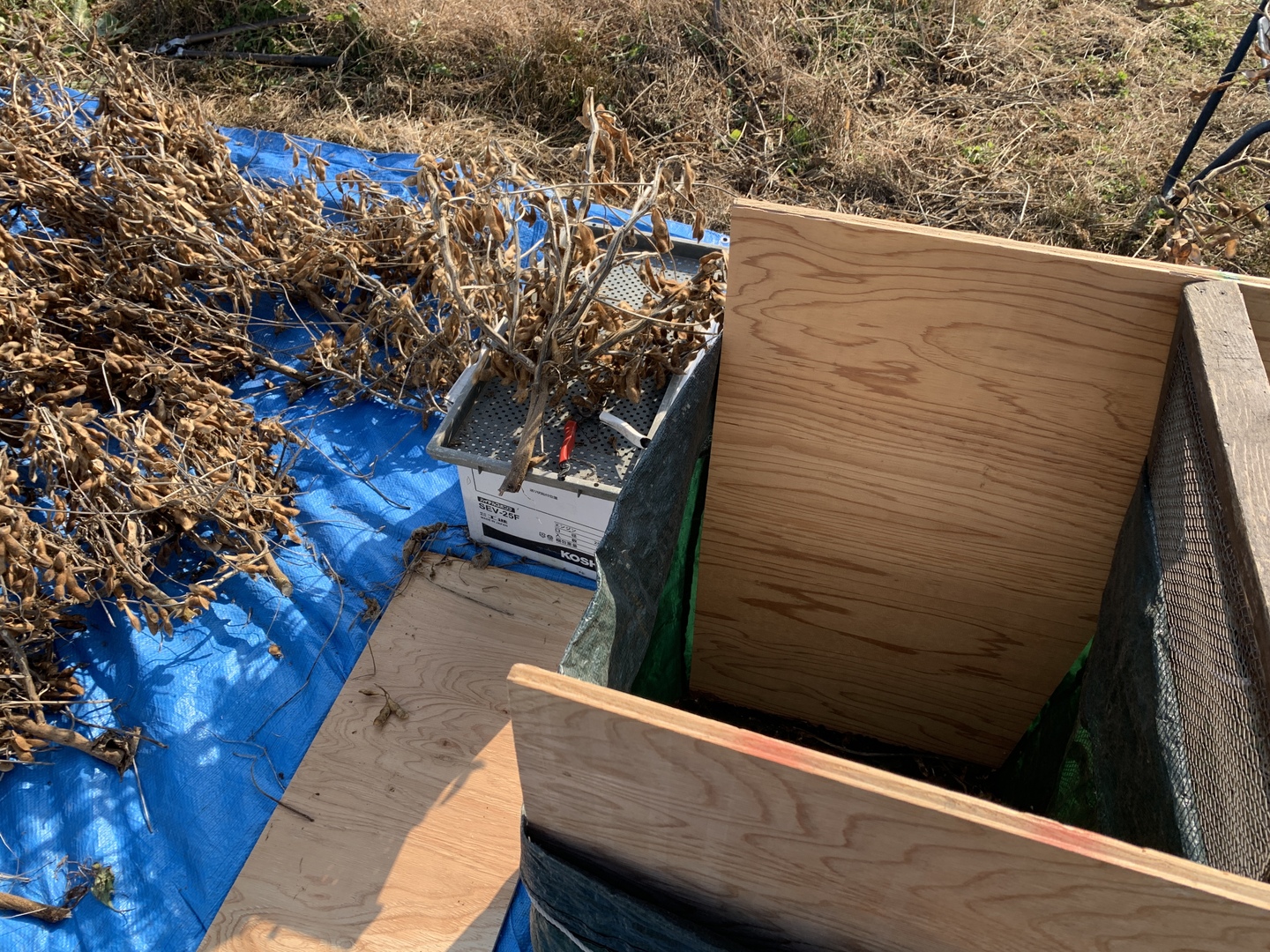 また、サヤから大豆を取り出す作業において、一般的な機械(脱粒機)による脱粒を行わず、各株の1枝1枝を木の板に打ち付けて、手作業で丁寧に脱粒しております。