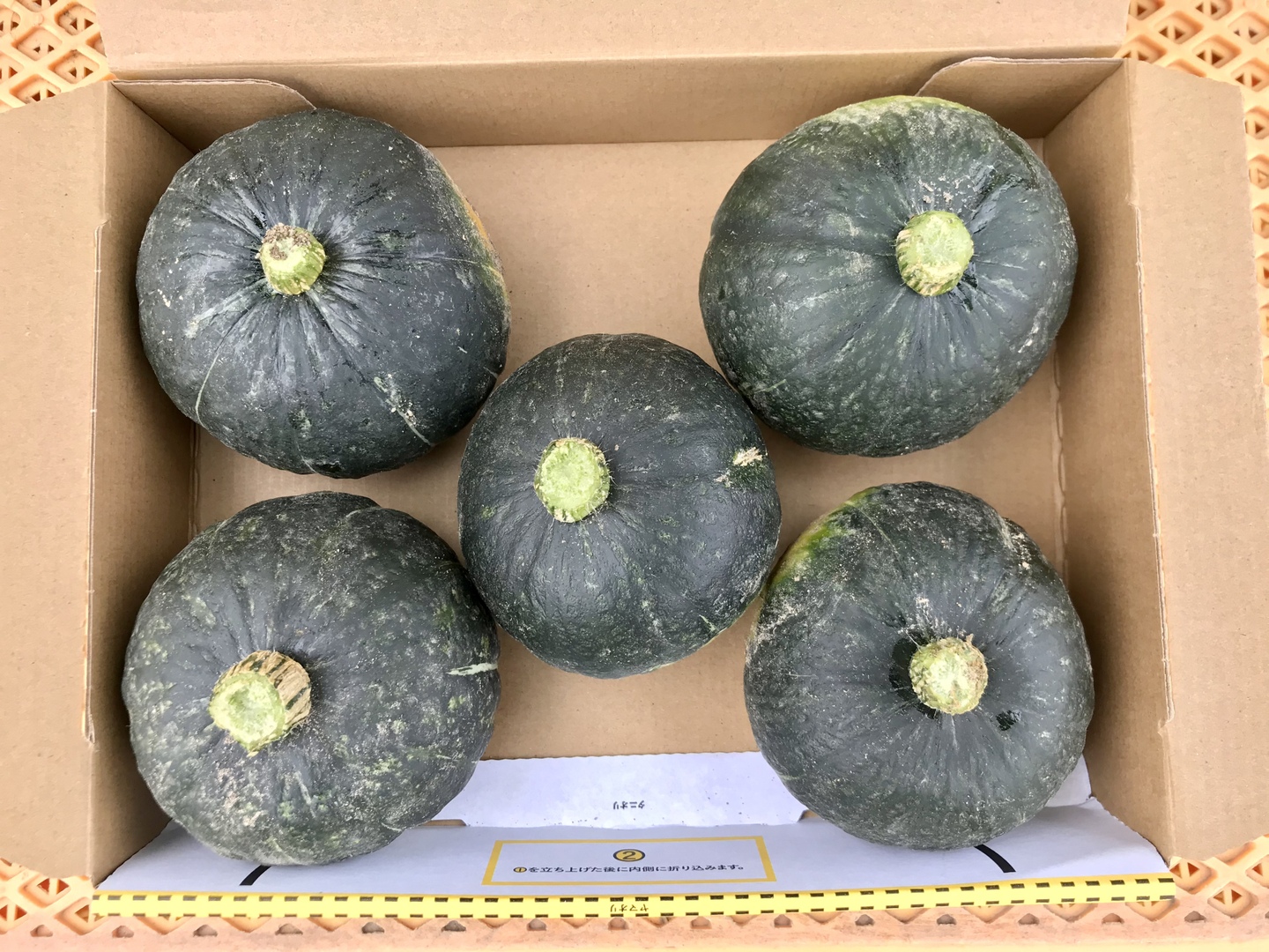 鹿児島産のミニカボチャ(栗坊)注文を受けてから、収穫日に収穫した箱込み1.5キロ前後を畑の空気も収穫しながらAB品大中小混合箱詰めして、当日発送します^_^