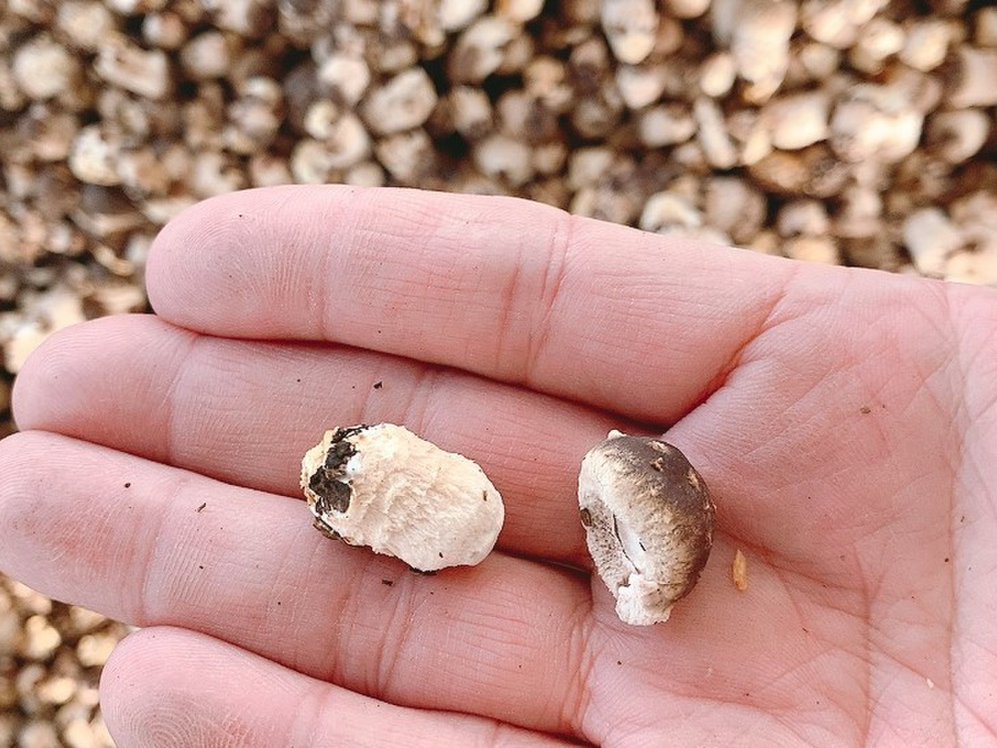 マルモ農園では半年じっくり熟成させた菌床を使い、しいたけを栽培しています。