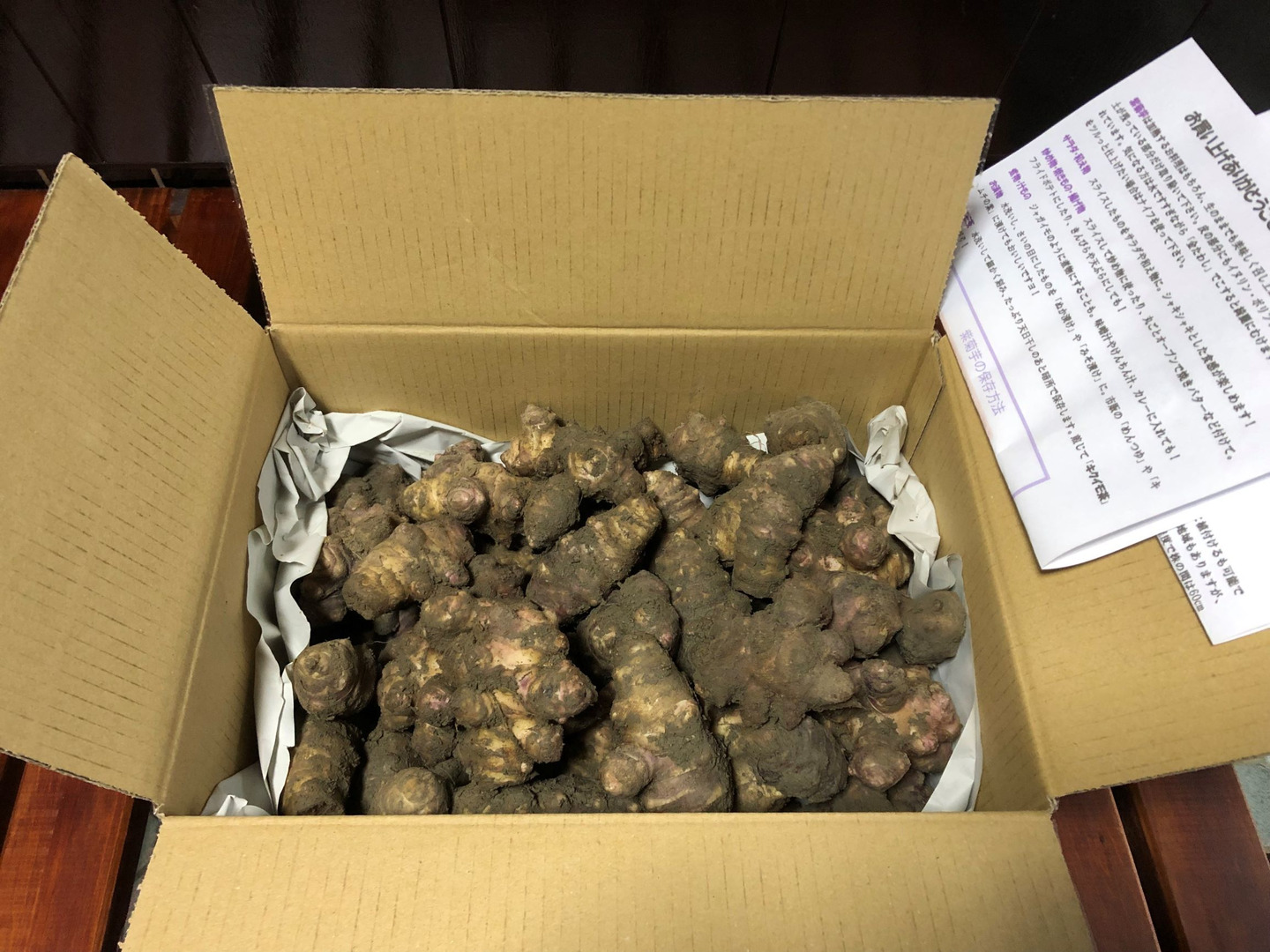 鮮度保持の「土付き」です!育った環境により近く新鮮さを保つ事ができ、通常の水で洗ったものより日持ちが良くなります。ご注文を頂いてから翌朝に掘り起こします(豪雪地帯のため積雪時には出荷が遅くなる事がございます)。サイズは大小さまざまになります。菊芋の「イヌリン」成分を減らさないため土を落とすのは食べる前、料理の前にして下さいネ!