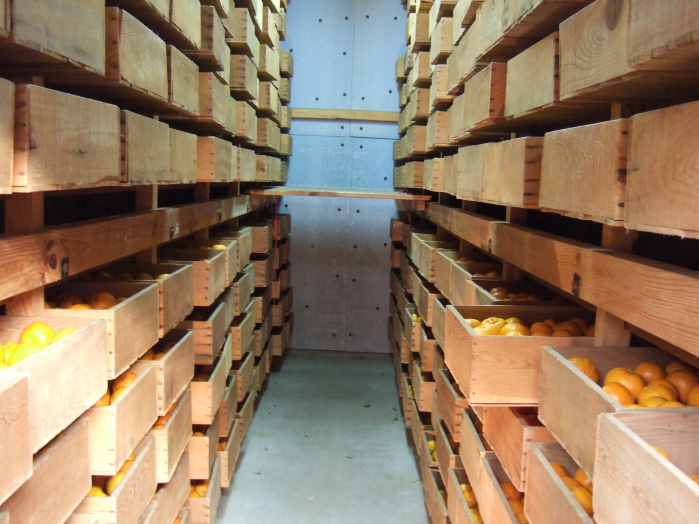 - 追熟必須のポンカンは、約一か月間、専用貯蔵庫の木箱の中に。美味いはず
