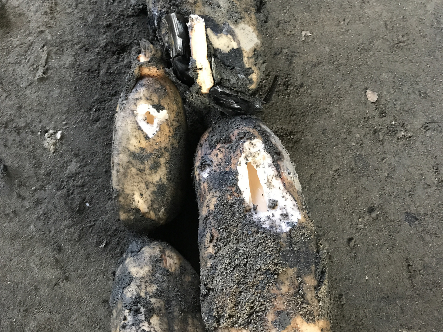 収穫時にクワで傷がついて、穴が空いたレンコンになります。傷口は直径約1、2センチほどです。