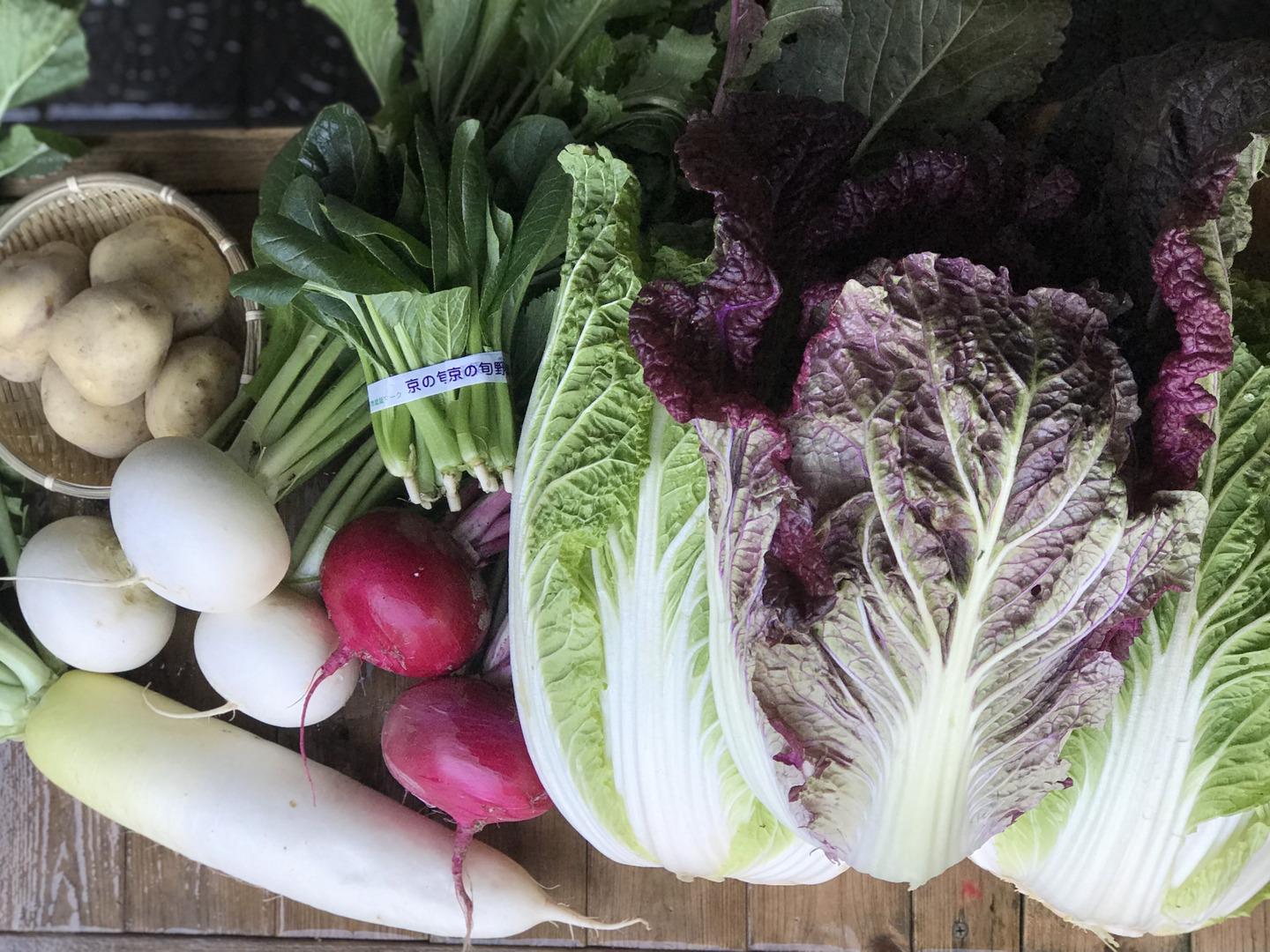 商品について あわせ買い対象 同生産者の別の「あわせ買い対象」商品と一緒にご注文いただくと、送料をまとめてお届けできる場合があります。 生産者からのお知らせ 体にいいものをコンセプトに、機能性野菜や旬の京野菜を中心に出品中です。ぜひこの機会にお試しください。 もっと見る 内容 冬の京野菜セット(7品目) 発送 ヤマト運輸(食べチョク特別送料) 送料 ¥ 常温便 + ¥ 0 数量1点ごとに送料が発生します。 種別 野菜 野菜セット 産地 京都府 農薬節約栽培 野菜 野菜セット 家庭用 動物性堆肥不使用 ビニール包装 紙包装 京都府x野菜 京都府x野菜セット 商品説明 《冬の京野菜 セット内容》◆オレンジクイン・・・2玉◆紫白菜(紫奏子白菜) ・・・1玉◆白かぶ(スワン) ・・・3株◆赤かぶ(もものすけ)・・・2株◆大根(冬の極み)・・・1本◆小松菜・・・1束◆じゃがいも(デジマ)・・・1kg か アンデスレッド・・・1kg(じゃがいもはデジマかアンデスレッドどちらかが入ります)★★オレンジクイン★★オレンジクインは加熱してもオレンジ色がしっかりと残るため鍋物や炒め物、煮物、漬け物など、さまざまな食べ方ができます。葉がやわらかくて甘味があり、彩りを生かして湯通ししてのサラダに使えます。★★紫白菜(紫奏子白菜)★★機能性成分のアントシアニンをたっぷり含んだサラダ用紫ハクサイです。サラダなど、生のまま食べる料理や、浅漬けなどの漬物、特に甘酢漬けにすると綺麗な紫色に発色します。浅漬けにした葉でご飯や寿司飯を包んでも綺麗です。★★白かぶ(スワン)★★肉質はやわらかく甘みがあり、漬物のほか、サラダ用に通用する良質性が最大の特長です。★★赤かぶ(もものすけ)★★簡単に表面の皮が剥け、生のままサラダなどで美味しく食べられるのが特徴となっています。中の果肉は薄く紅が差し、まるで桃の果肉のような感じです。その部分をそのまま生で食べてみると、優しい歯触りで、苦みなどが無くほんのり甘味が広がり、とても美味しいです。サラダやマリネの他、一般的な赤かぶのように浅漬けなどもお勧めです。ただ、身が軟らかめという事もあり、煮物にはあまりお勧めしません。剥いた皮の部分は浅漬け等にご使用頂けます。★★じゃがいも(デジマ)★★デジマは皮がやわらかく、口に残りにくいので皮ごと調理してもおいしく食べられます。白かぶ、赤かぶ、大根は葉を付けた状態でお送り致します。生産者情報もご覧下さいね! もっと見る この商品のことをお友達にもシェアしませんか ポスト シェア
