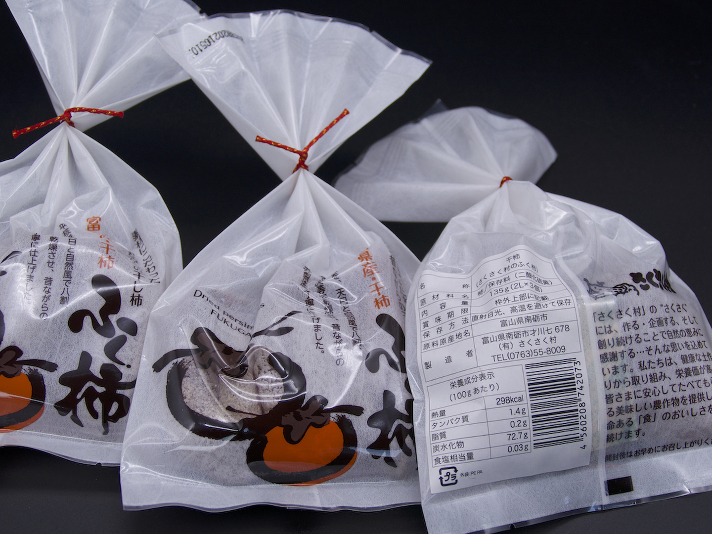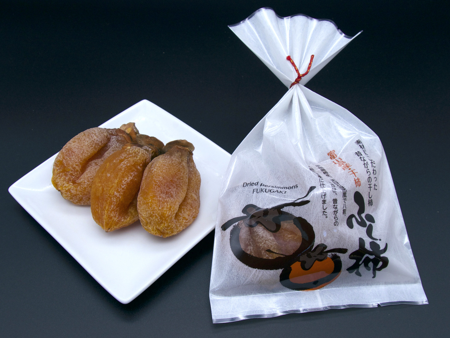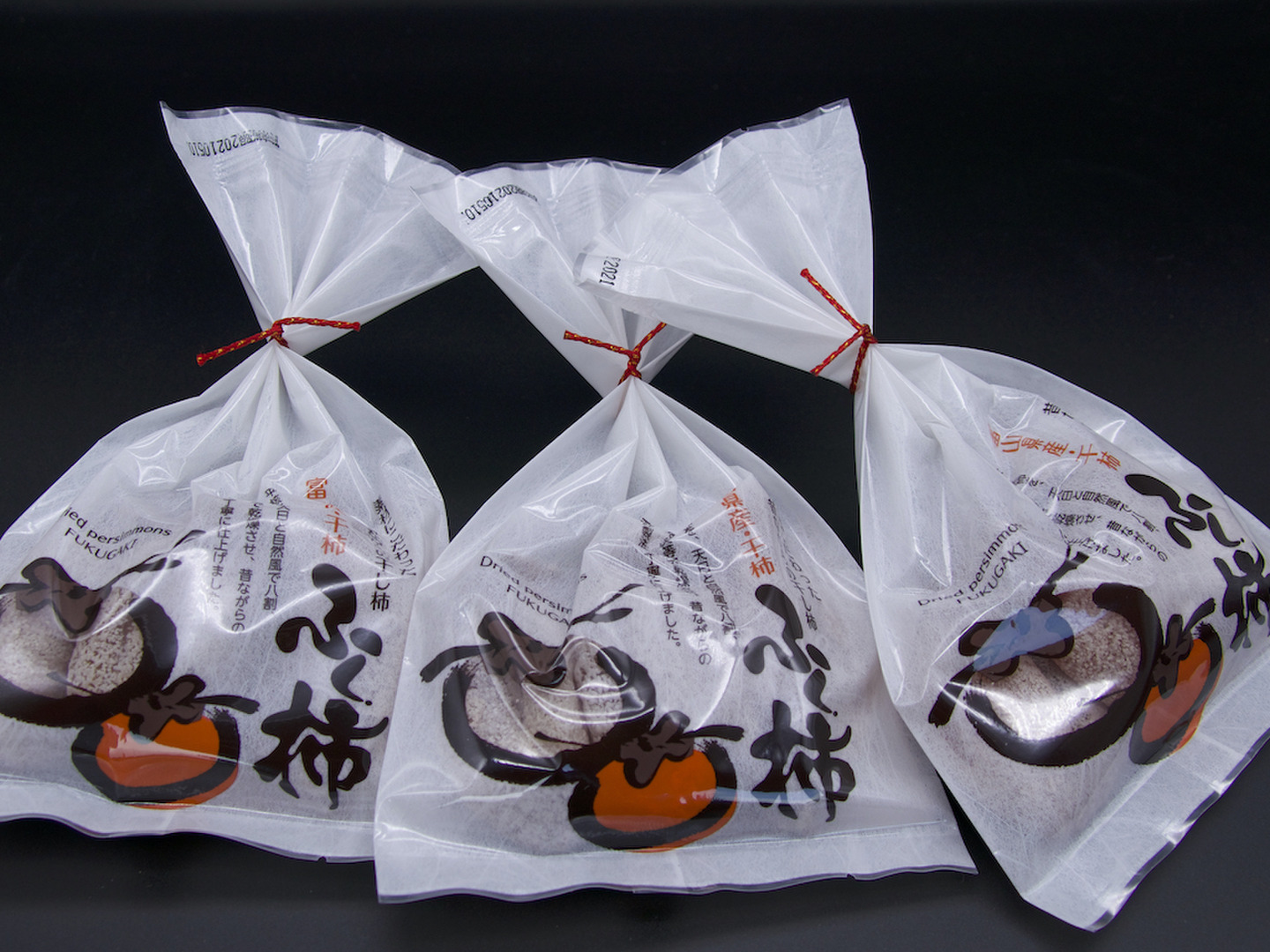 ・原料柿の品質の良さ(細胞のち密さ)と時間をかけた製法で柔らかく仕上げることを心掛けております。また、柿の品種は「平核無」という種のないものです。