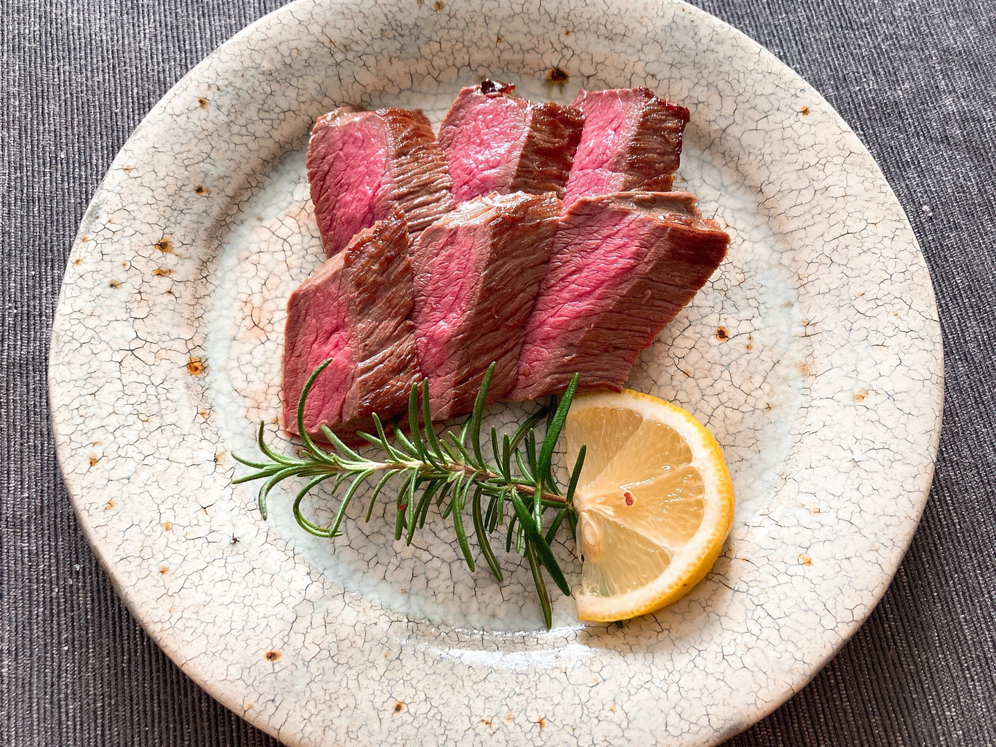 肉は1〜2歳の鹿と比べると臭みが全くなく芳醇な旨味と肉の弾力が口の中を包みます。