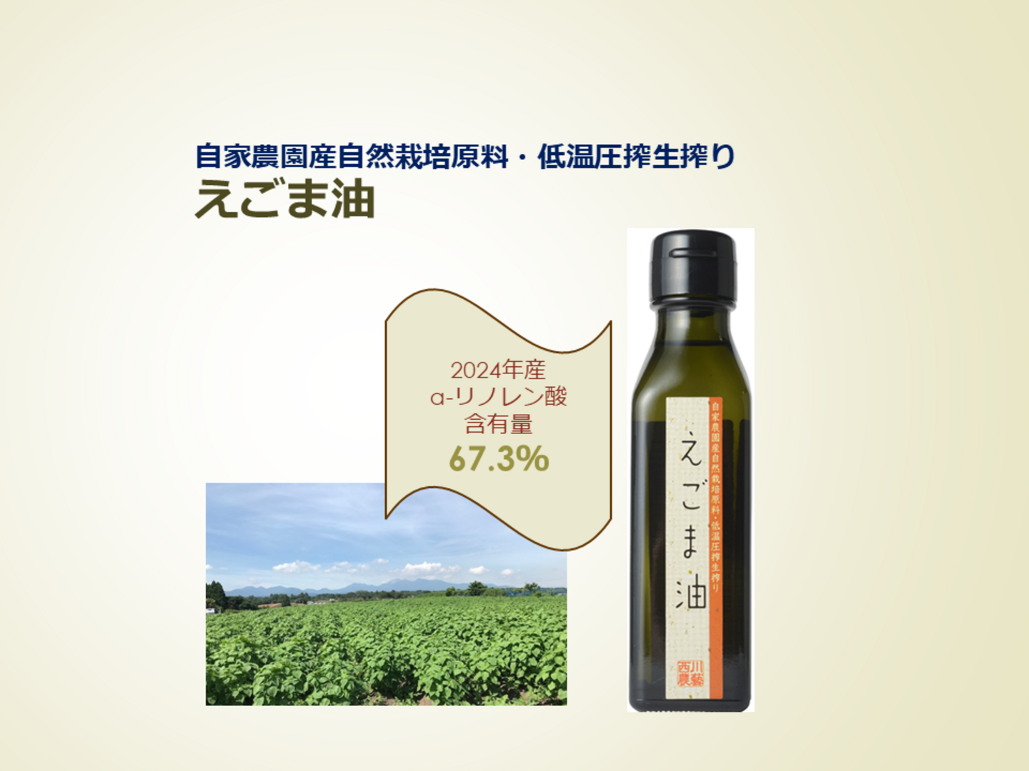 毎日のオメガ3摂取足りていますか?自家農園産自然栽培原料・低温圧搾生搾りえごま油