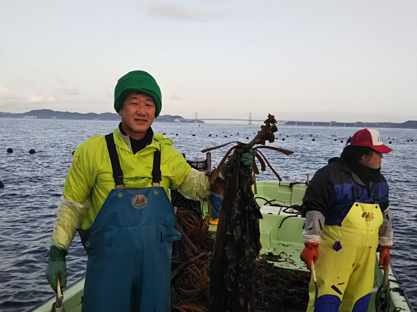 湯通し塩蔵わかめの養殖も、鳴門海峡の潮通しの良い場所で行っています。