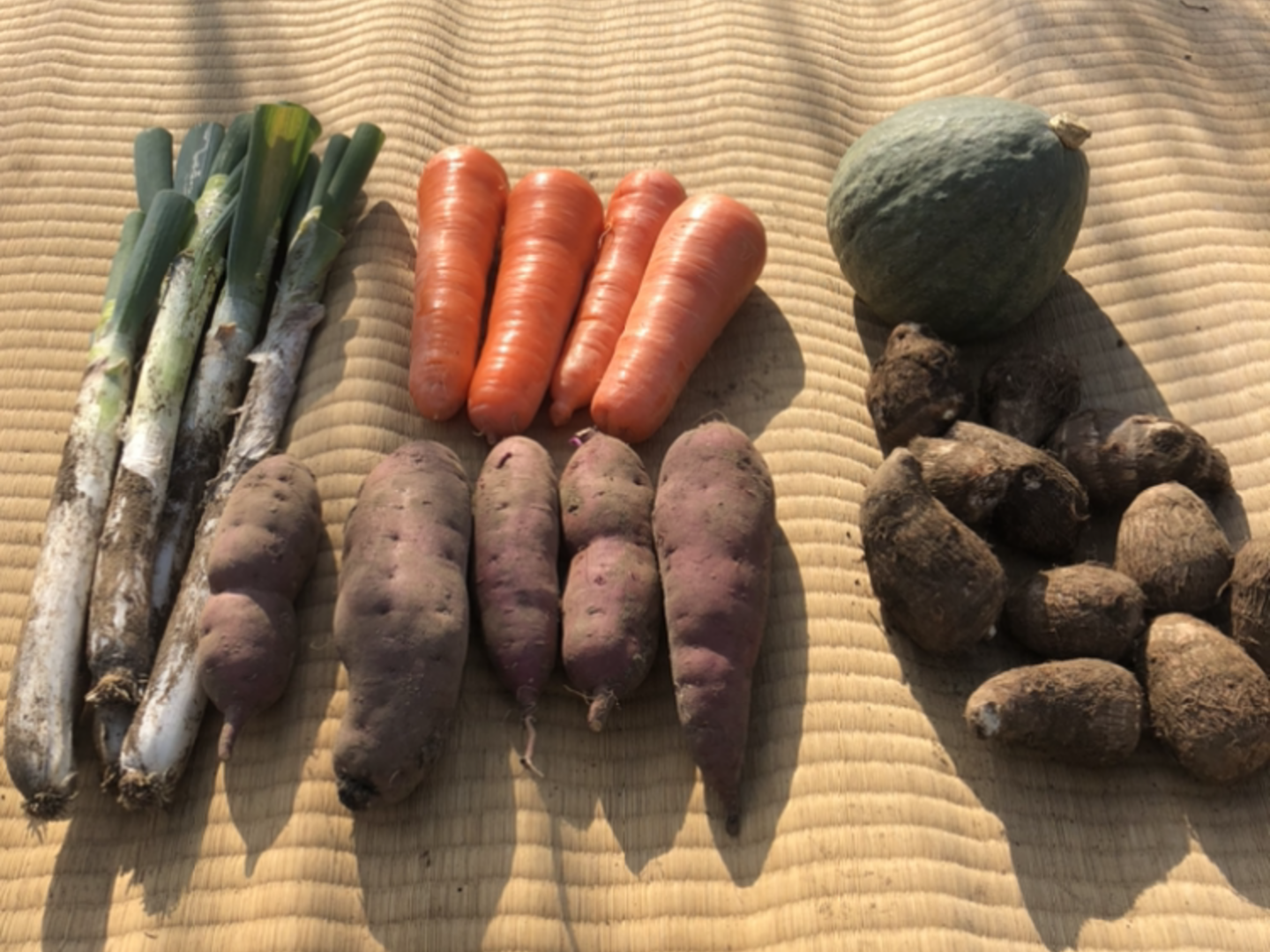 保存野菜5kgセット(かぼちゃ1kg+里芋1kg+人参1kg+サツマイモ1kg +ネギ1kg)※農薬化学肥料不使用