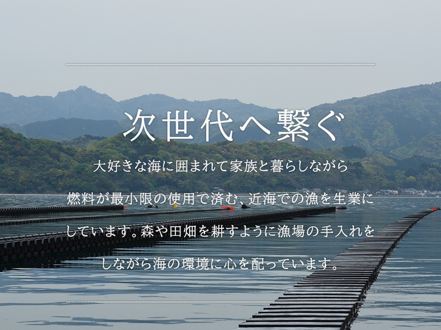 牡蠣の身に成長を集中させるために、牡蠣殻の成長をコントロールし、殻に注ぐ成長エネルギーをなるべく中身に向けるようにしています。まら、海の環境を守るためにゴミを最小限にし、牡蠣を食べていただくことでより海がきれいになる仕組みを作っています。