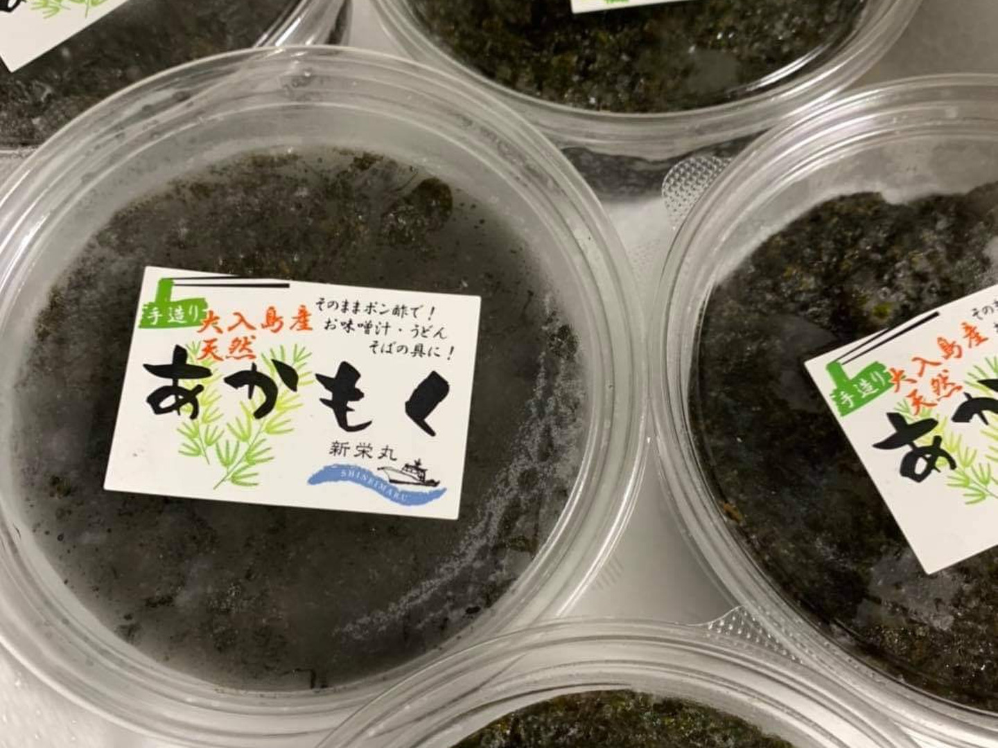 大分県佐伯市佐伯湾で水揚げされたアカモクを独自の方法で湯通し、ミンチにしています。