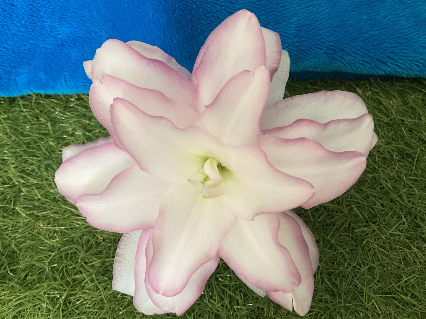 茎の長さは10cm前後、テーブルフラワーとして飾れます。八重1輪のみの商品です。