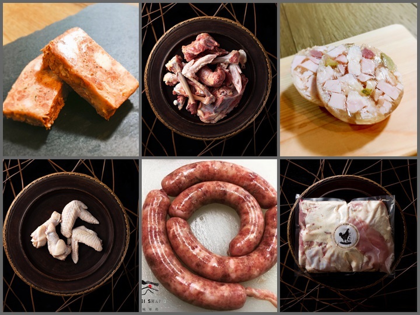 | 内容 | 正肉 350g / 粗びきミンチ 300g / パテ・ド・カンパーニュ / 天城軍鶏のアスピック(ゼリー寄せ)/ 天城軍鶏ソーセージ / 軍鶏ガラ 800g / 手羽先・手羽元セット(各2本) | ||||||