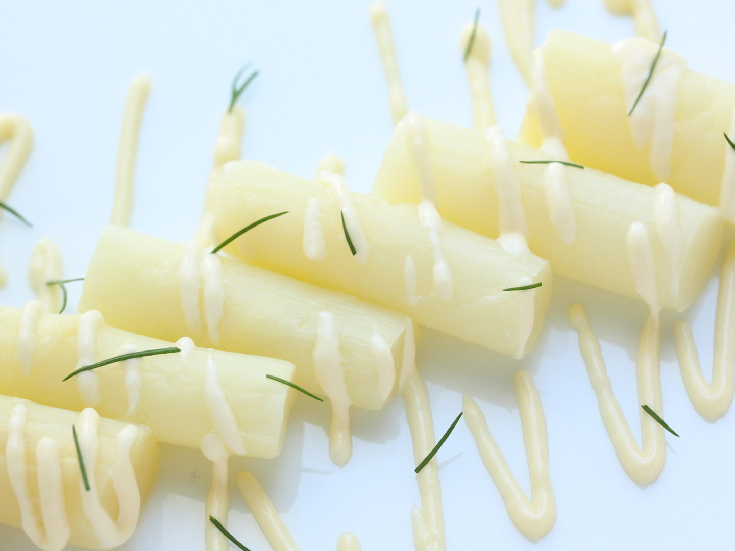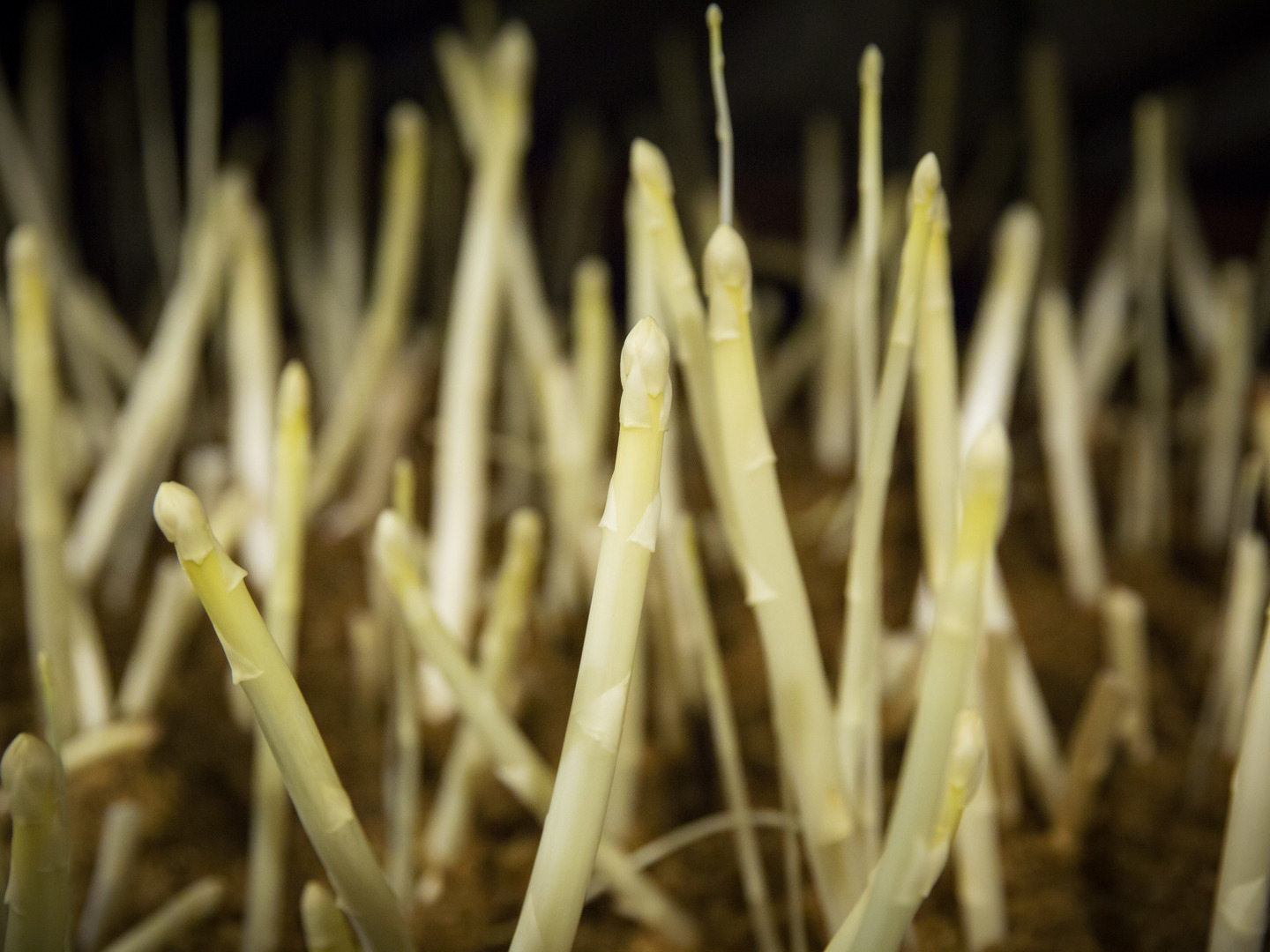 ・ホワイトアスパラガスは日光や光に当たると緑色に変色する習性があります。