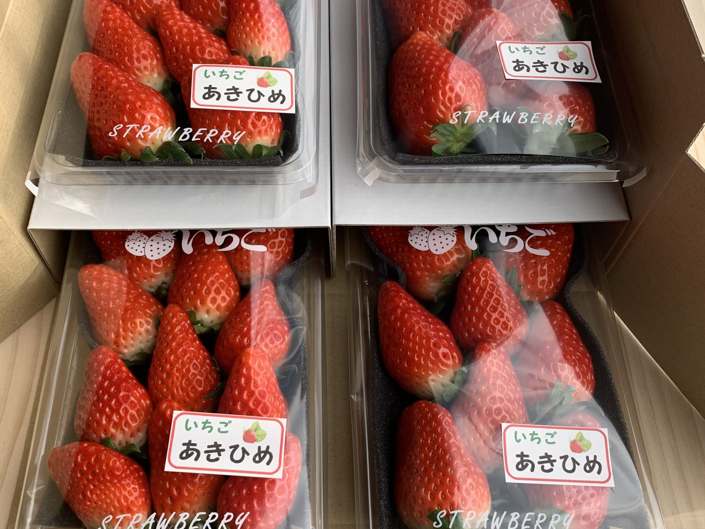 章姫は果実が長めの円錐形をしているのが特徴。ほとんどのイチゴは横幅のある円錐形ですが、章姫は縦長の円錐形です。果皮は濃橙赤色で、果実は少しやわらかめで口当たりがよく、果汁も豊富。酸味が少なく甘味をしっかりと感じられるイチゴです。