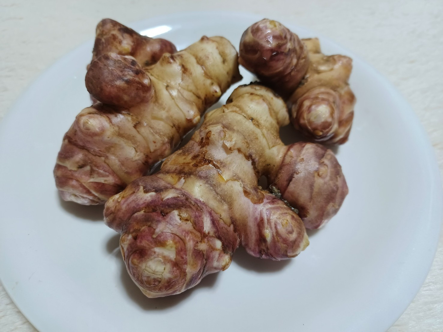 菊芋は乾燥に弱く、洗うと鮮度が落ち、日持ちしなくなってしまいますので、土付きのまま発送いたします。