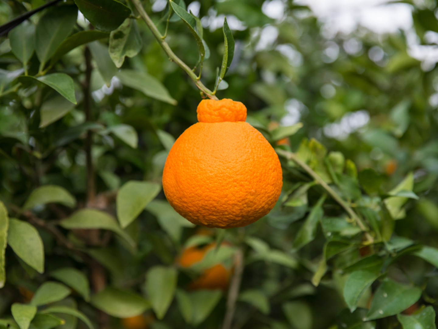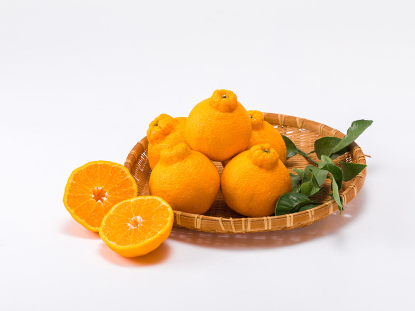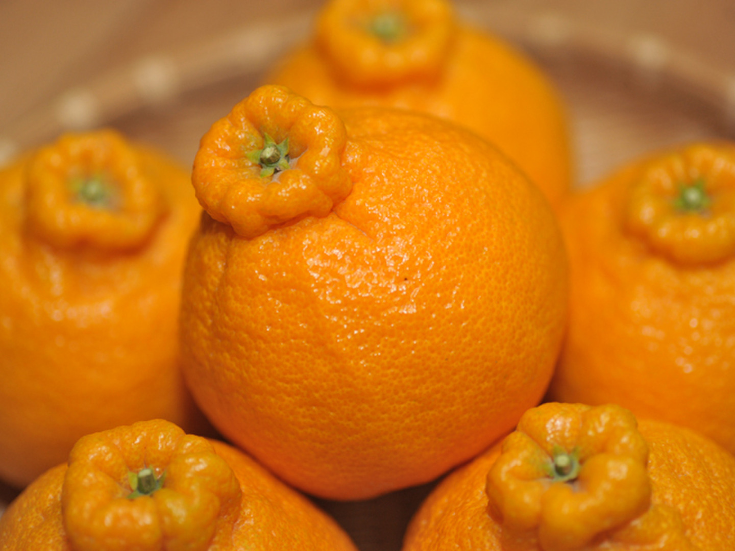 大将季(だいまさき)は平成9年に、鹿児島の育成者によって「不知火」の枝変わりとして発見された新しい不知火です。果皮と果肉が、これまでの不知火よりも紅が濃く、鮮やかな橙色をしています。皮はむきやすくて種も無く、不知火の特徴を受け継いでいます。果肉は豊かな果汁と甘みをもち、より濃厚な味わいが特徴です。その外観と希少性から、大手デパートでも贈答用として人気の高い商品です。不知火よりも紅色が強いこともあり、当初は「紅デコポン」と命名する予定でしたが、最終的には「大将季(だいまさき)」という品種名になりました。この変わり枝を育てた鹿児島県阿久根市の大野氏のご家族の名前「将季(まさき)」君から「大将季(だいまさき)」と命名されました。