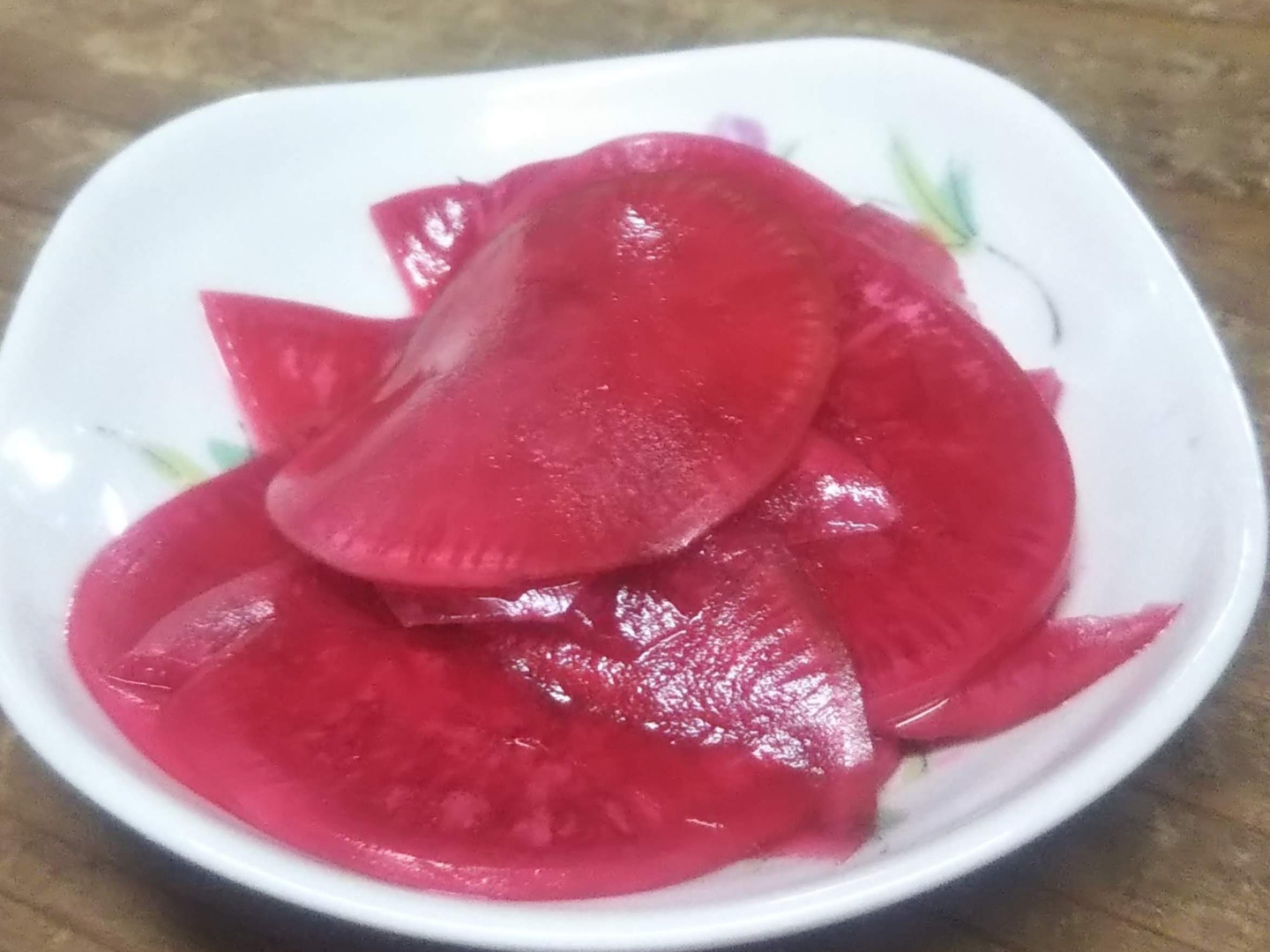 甘酢漬けやピクルスにするとさらに色鮮やかになります。