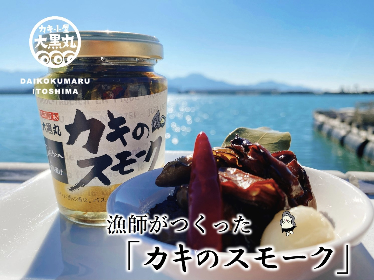 素潜り漁師大黒丸が作った自家製カキの薫製です!ご家庭でもと、オイル漬けにして作りました!スモークの薫りがほどよく、ビールやお酒の肴に。パスタやアヒージョにお勧めの一品です!