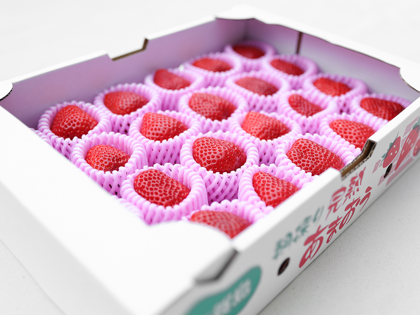 志賀島産の完熟あまおう、朝摘みで新鮮なまま、その日に発送いたします。