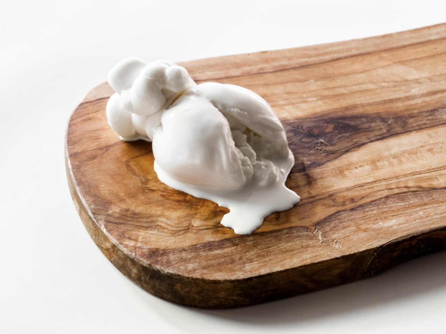 繊維状のモッツァレラとクリームを混ぜ合わせたストラッチャテッラをモッツァレラチーズで巾着状に包んだチーズです。