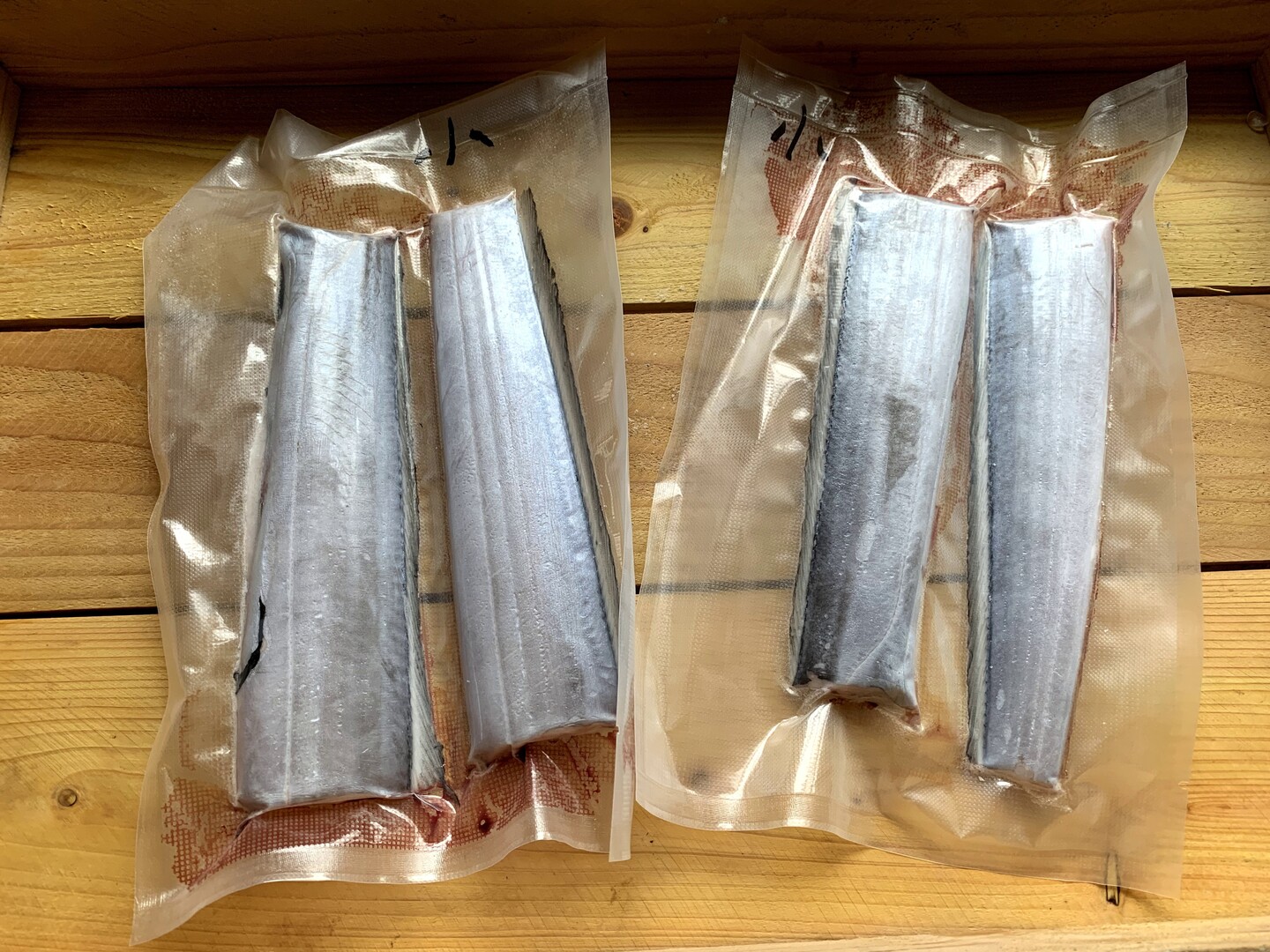 この太刀魚は、指2〜3本未満のサイズを2匹セットです。