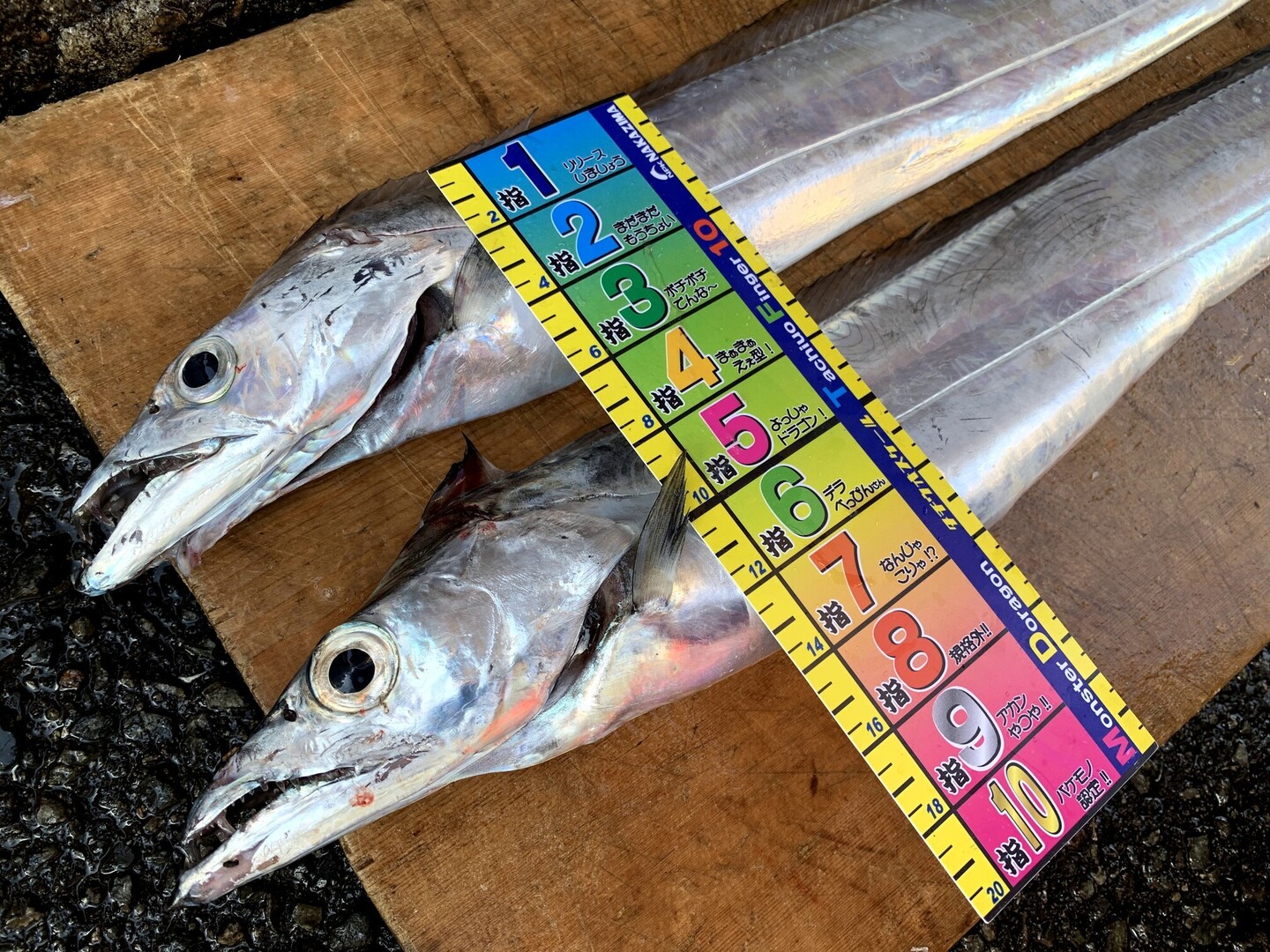 太刀魚のサイズは幅を指の本数で測ります。
