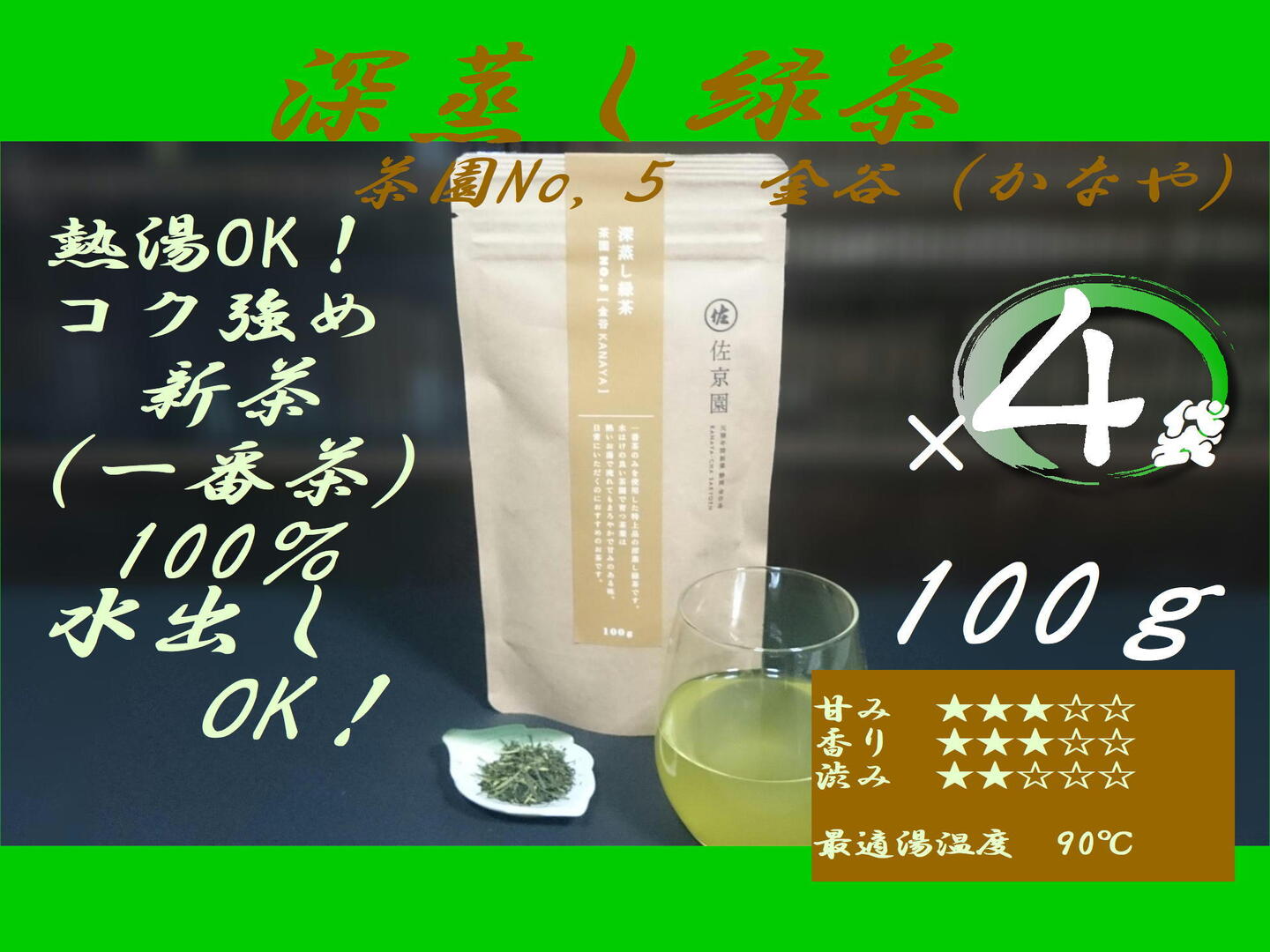 〈4袋セット!〉熱湯でコク強め!深蒸し緑茶 茶園NO,5 「金谷 (かなや)」100g×4袋 【新茶 一番茶100%】農カード付!