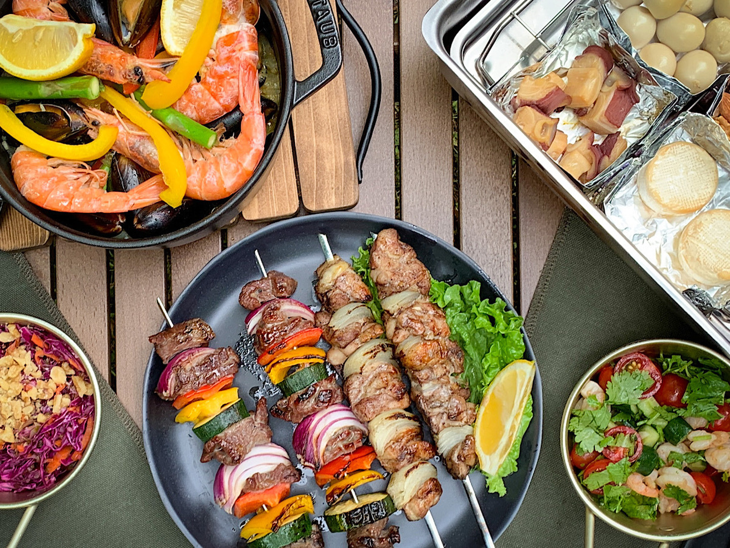 アウトドア料理で言うならバーベキューに始まりダッチオーブンやスキレットを使った定番の肉、野菜の料理。
