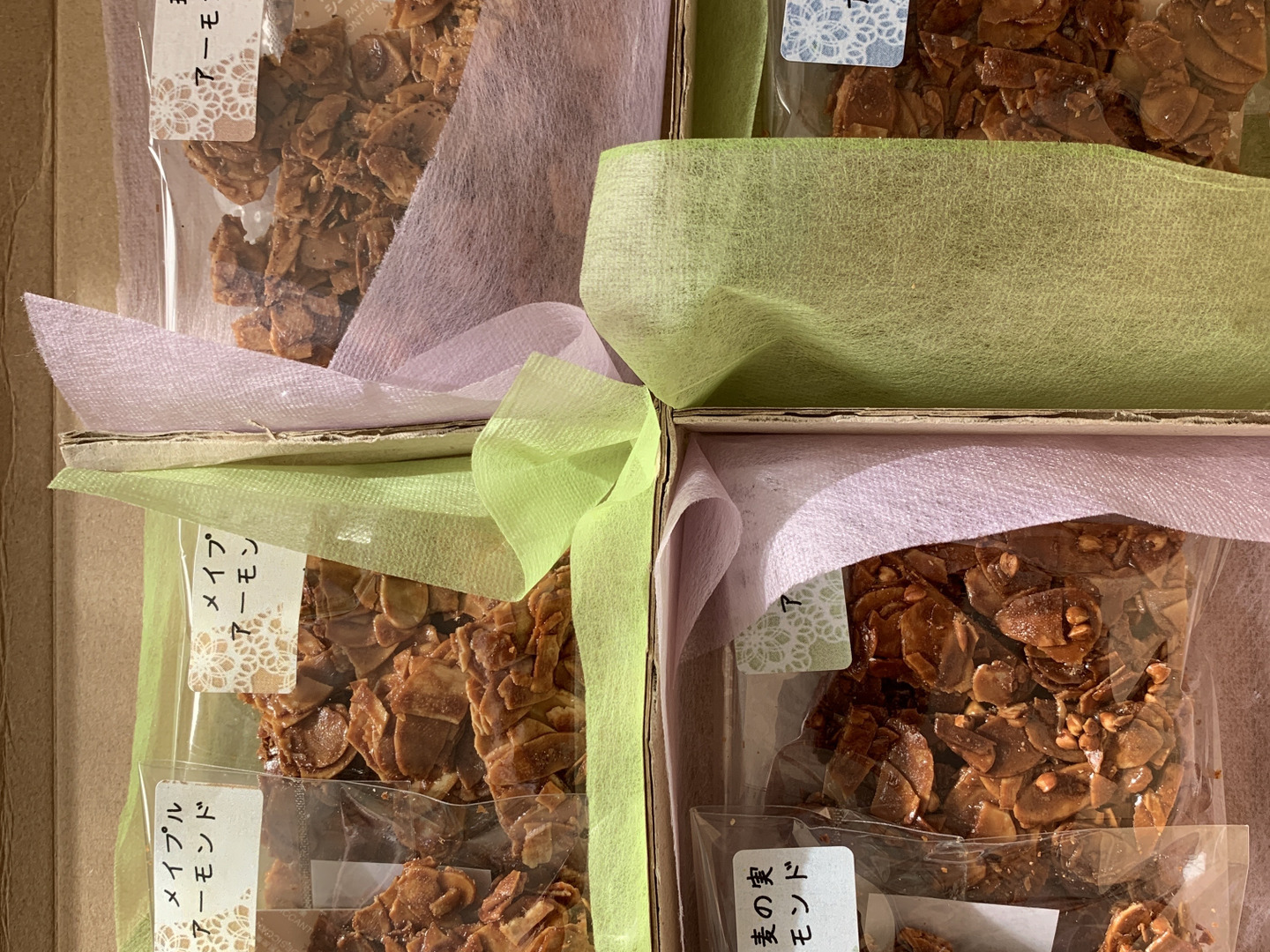 メイプルバターアーモンド(プレーン2個、蕎麦の実2個、えごま2個、珈琲2個)