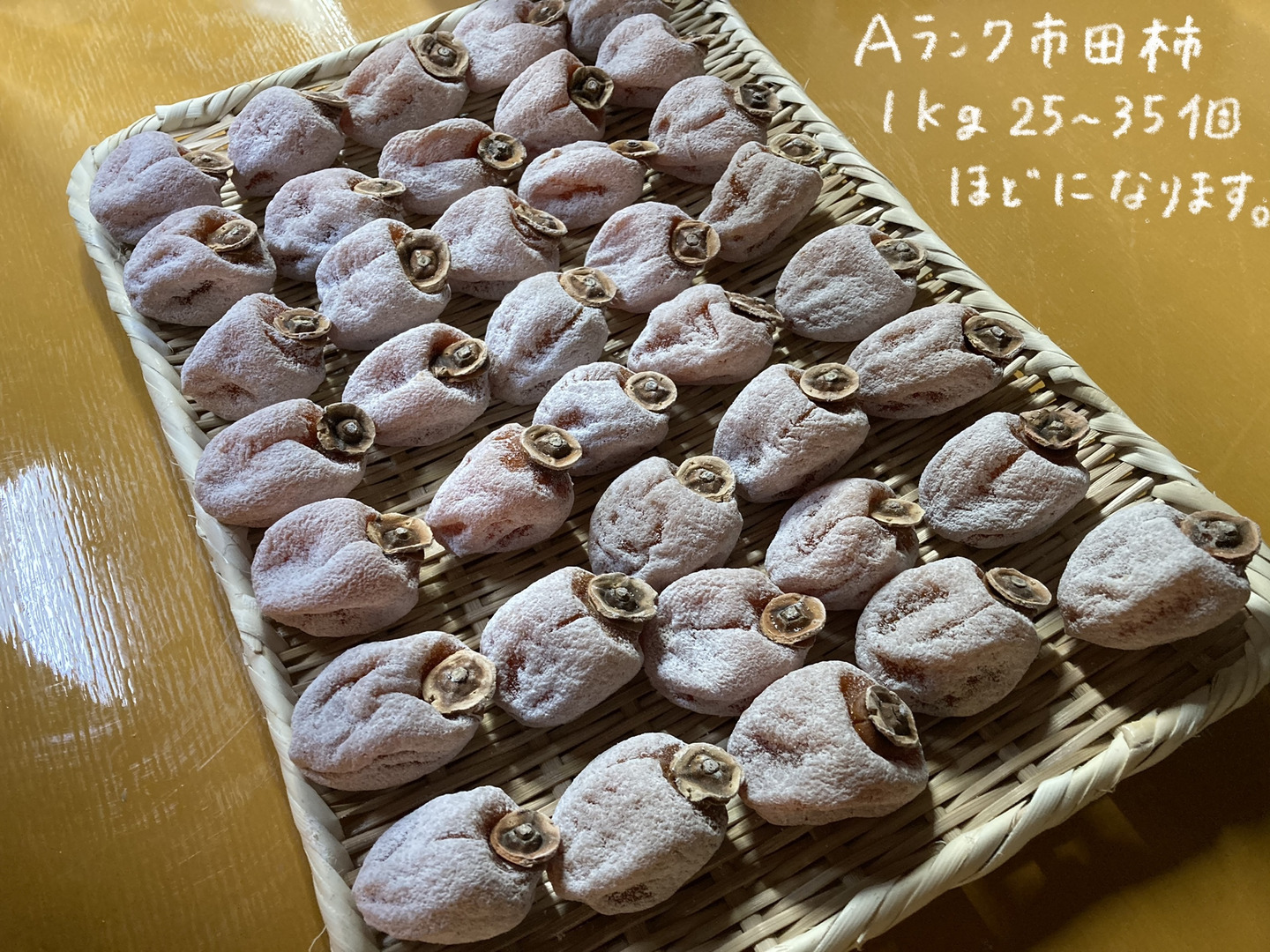柿の表面のブドウ糖は15度で溶けてしまうため冷蔵庫や涼しいところで保存してください。