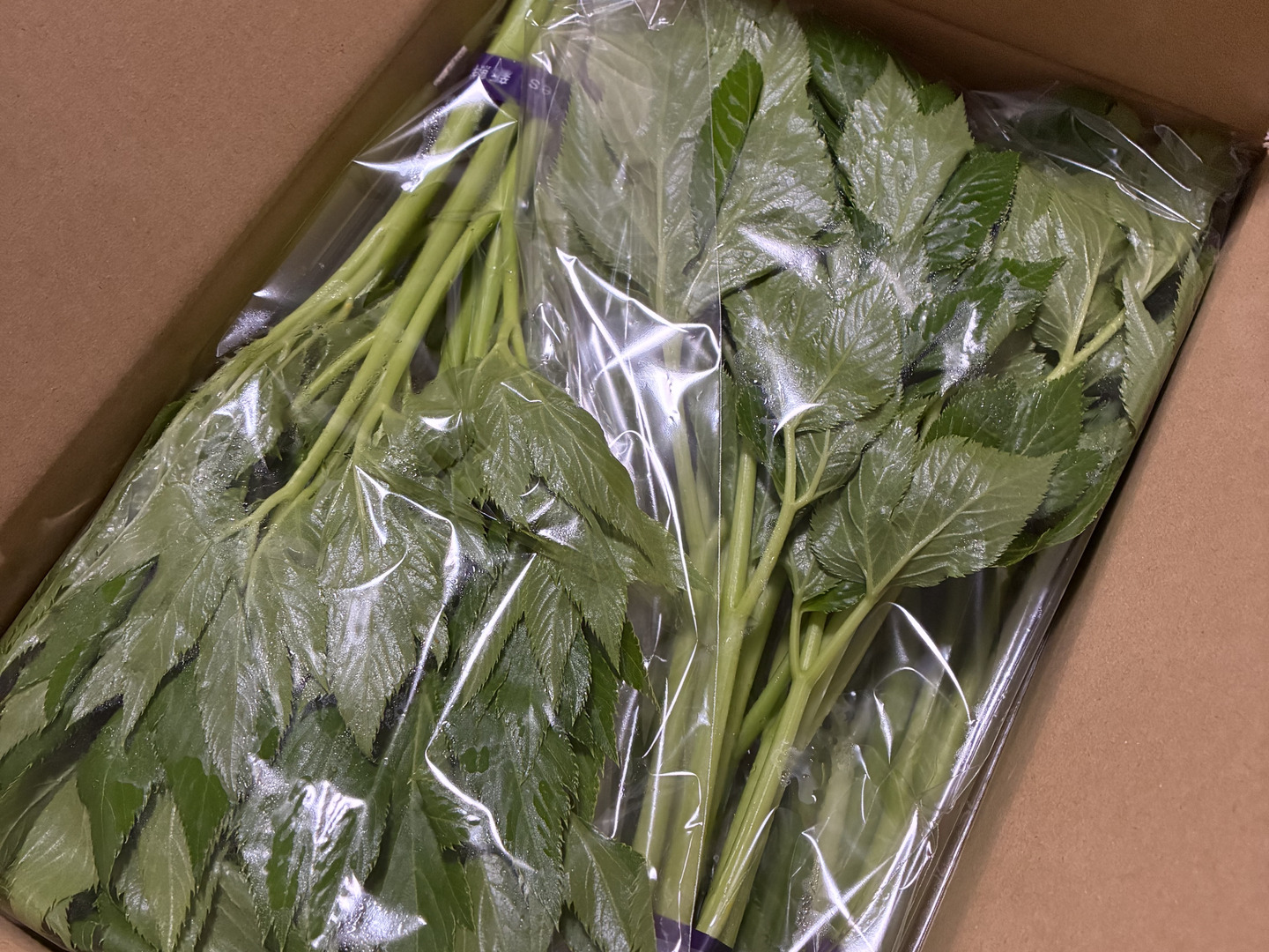 このため収穫したあしたばに水分が残っている場合は輸送中の過湿による蒸れを防ぐために新聞紙の包装となる場合もあります。