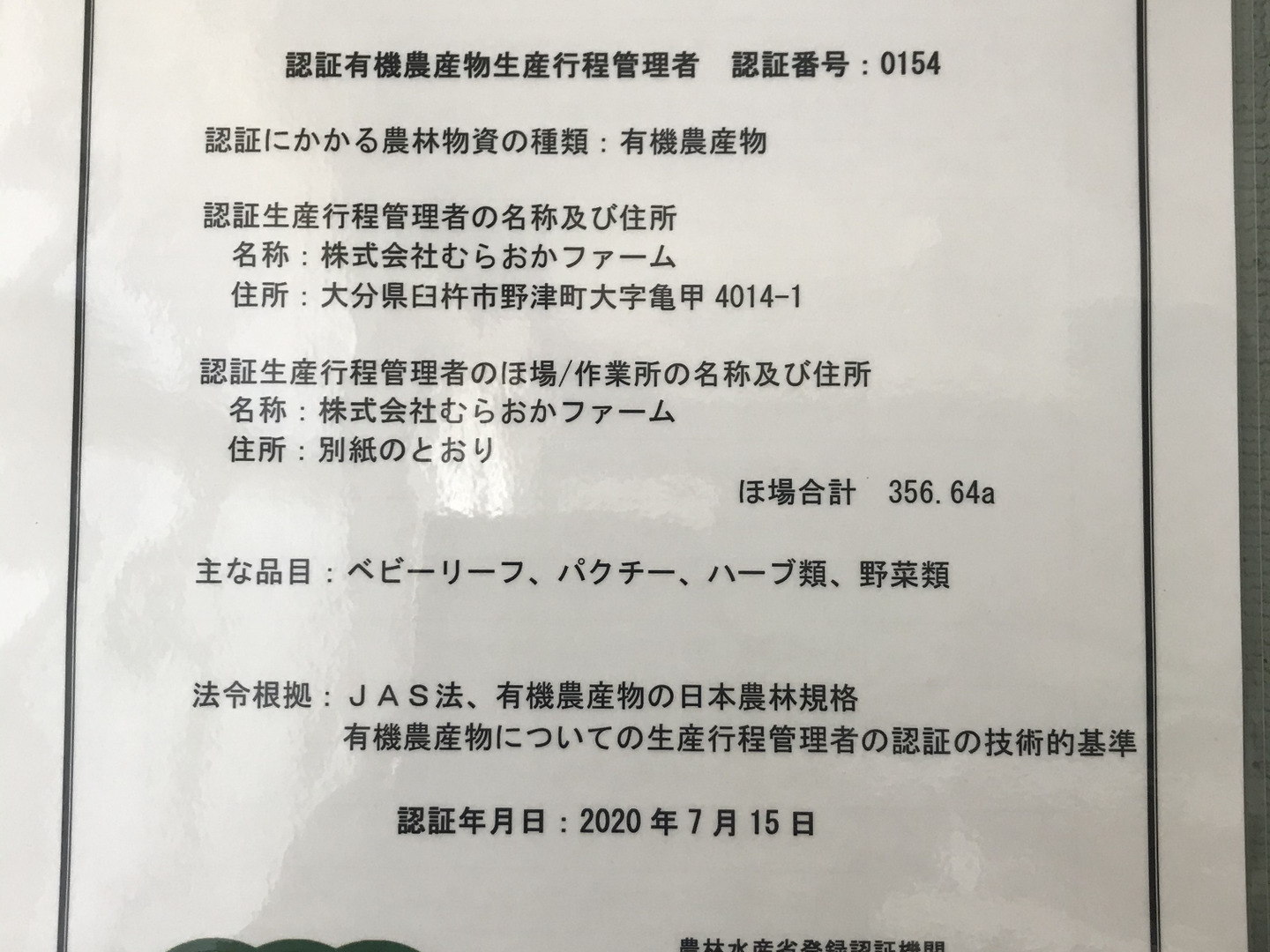 おかげ様で私たちの「良い土」は有機JASの認証を受けることができました。