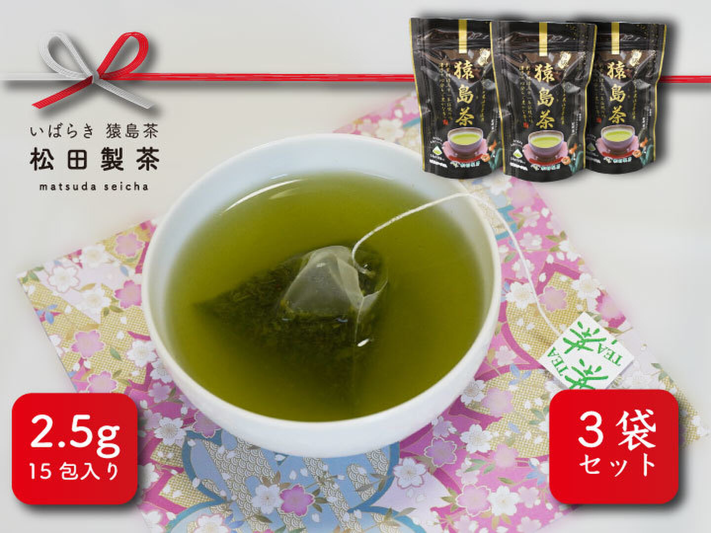 【実質送料無料】高級猿島茶/2.5gx15(3袋)お茶 緑茶 深むし茶 紐付きティーバッグ 本格的 日本茶イントラクター監修 ブラックアーチ農法で作りました 旨み甘みがたっぷり