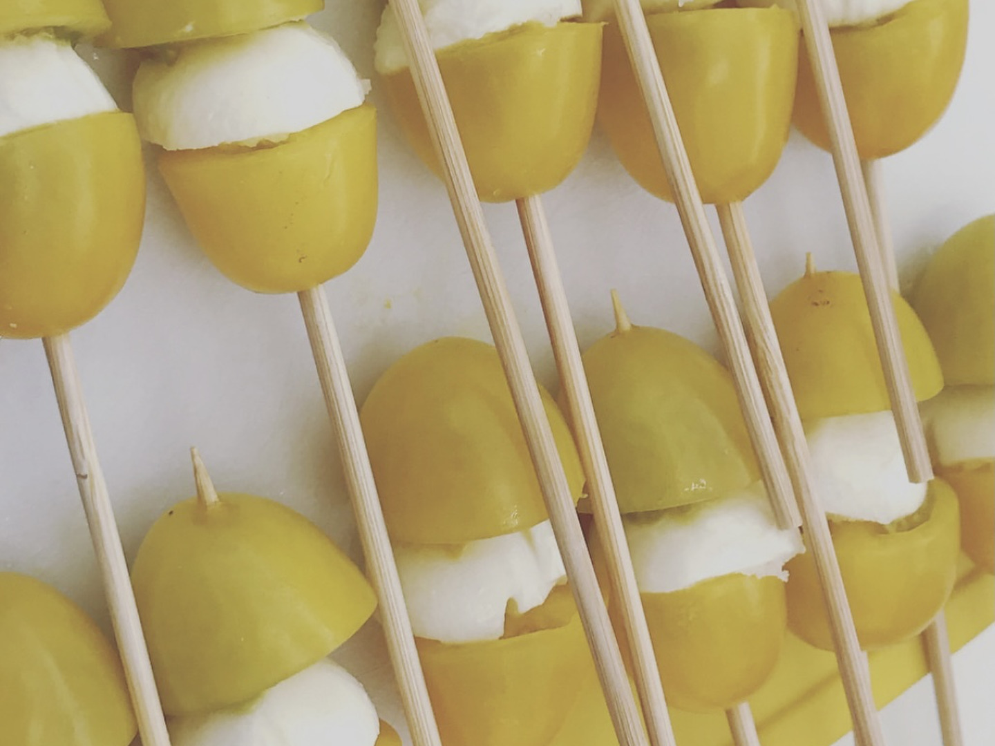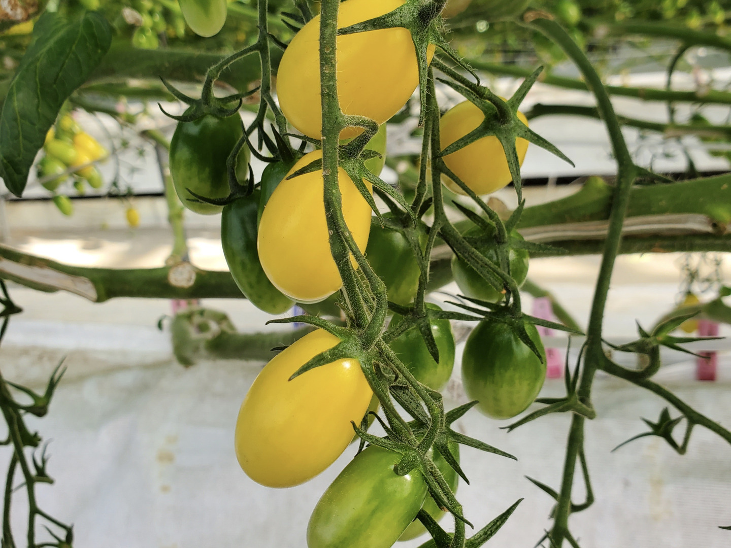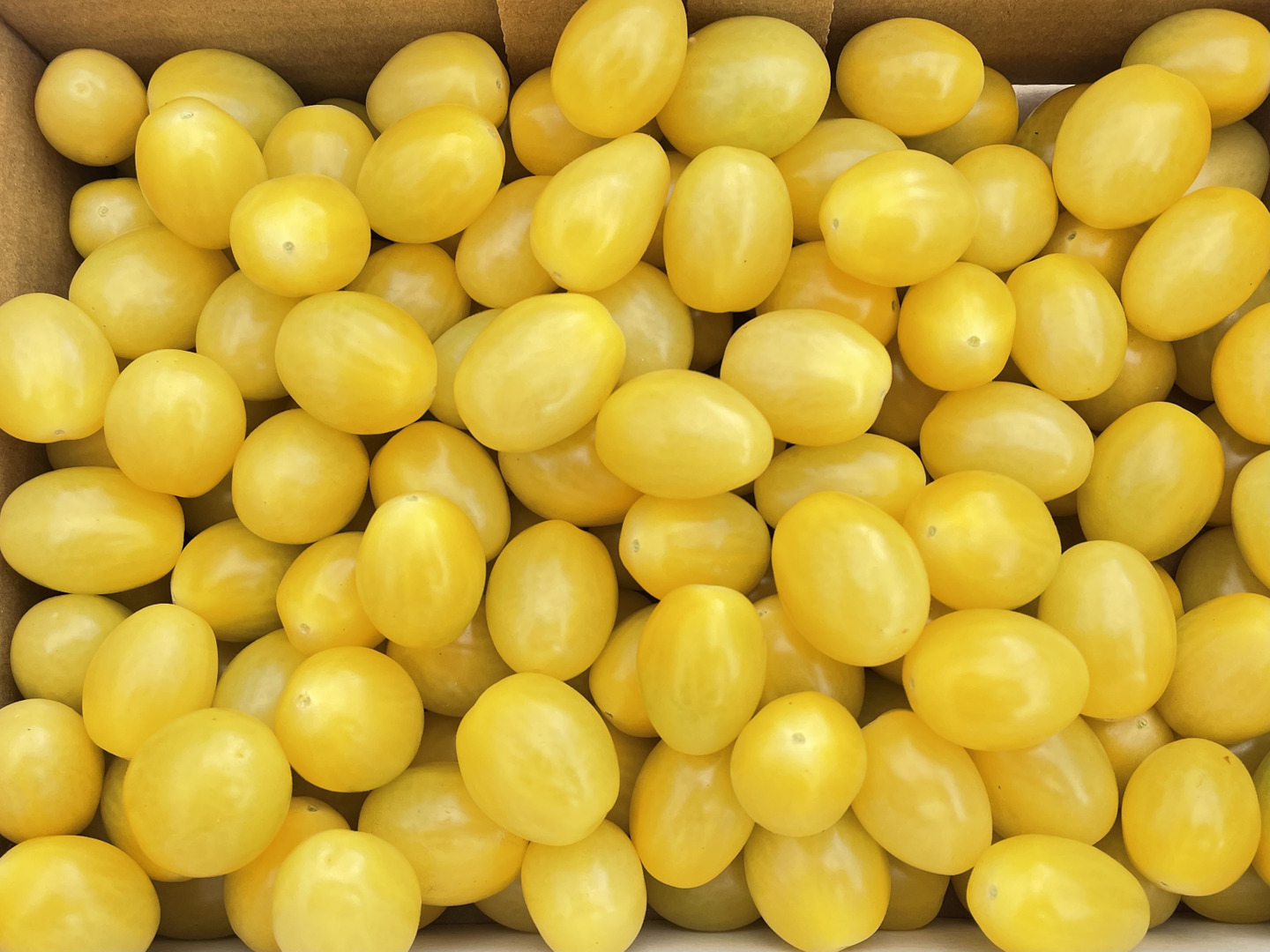 細長いプラムのような形が愛らしいイエローミニトマト。
